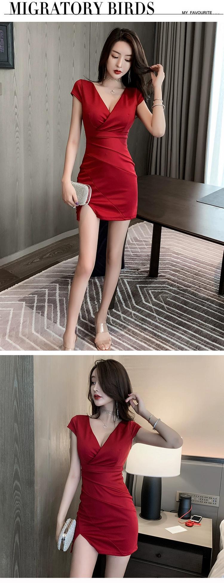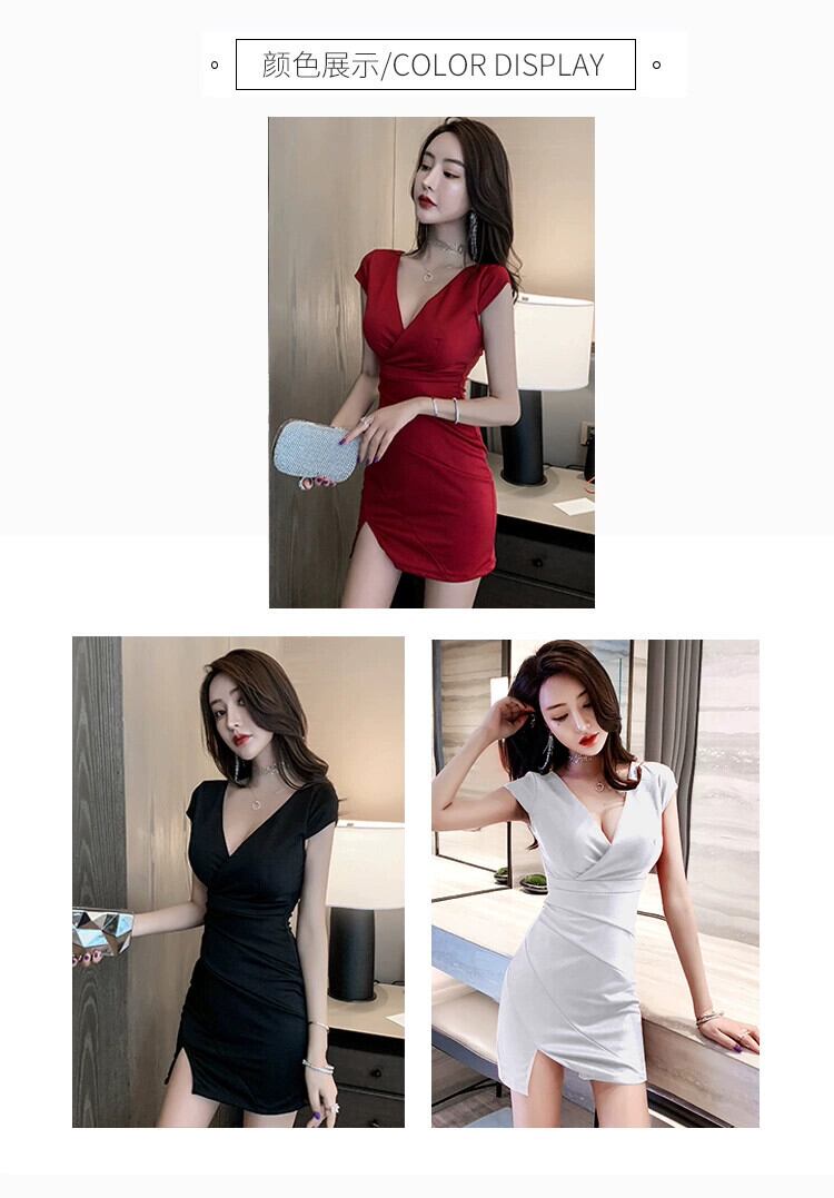 ナイトクラブの女性の夜の作業服技術者作業服バッグヒップスリットショートスカートローカットディープ V ネックドレス Vネック yeyij32729039447