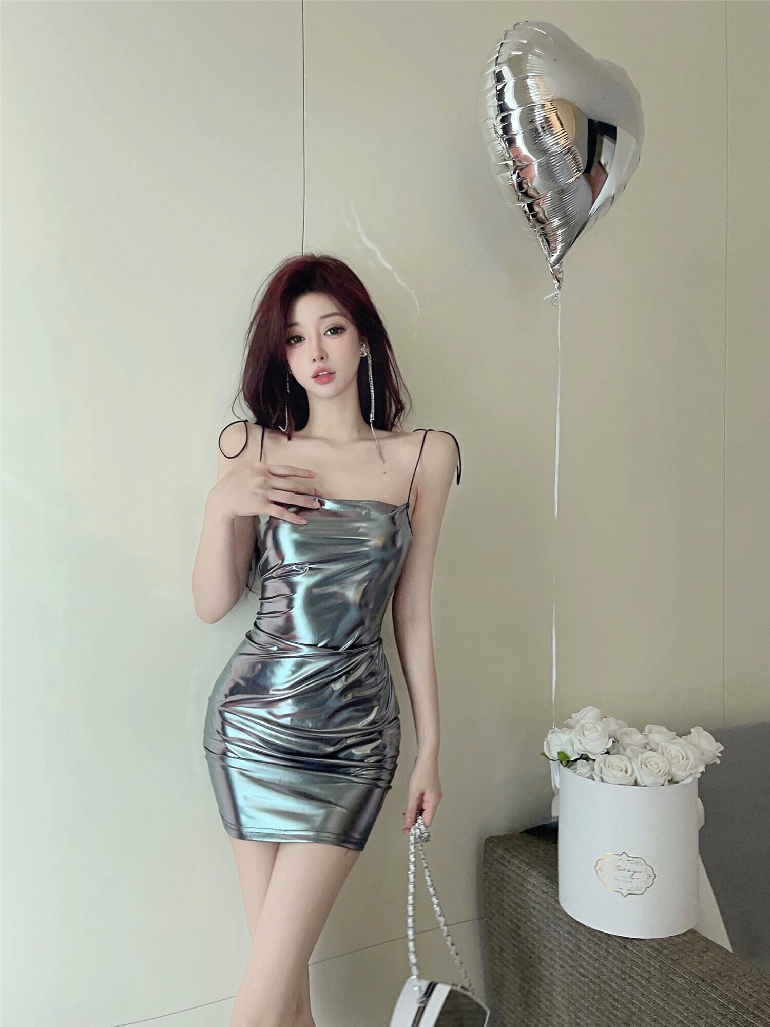 ダンスアンカー服バージャンプディスコ服女性ドレス光沢のある顔セクシーなバッグヒップサスペンダードレス yeyij88420443671