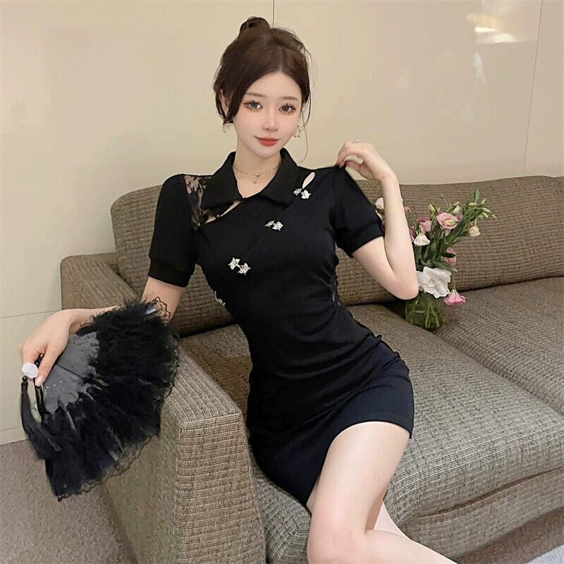 ライブ衣装、女性アンカー、ポージェニック、純粋な欲望、若い、、セクシーな黒の改良チャイナドレス ブラック ピュア yeyij63122345679