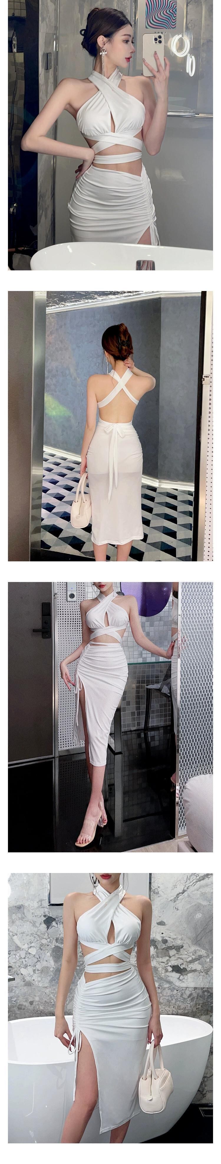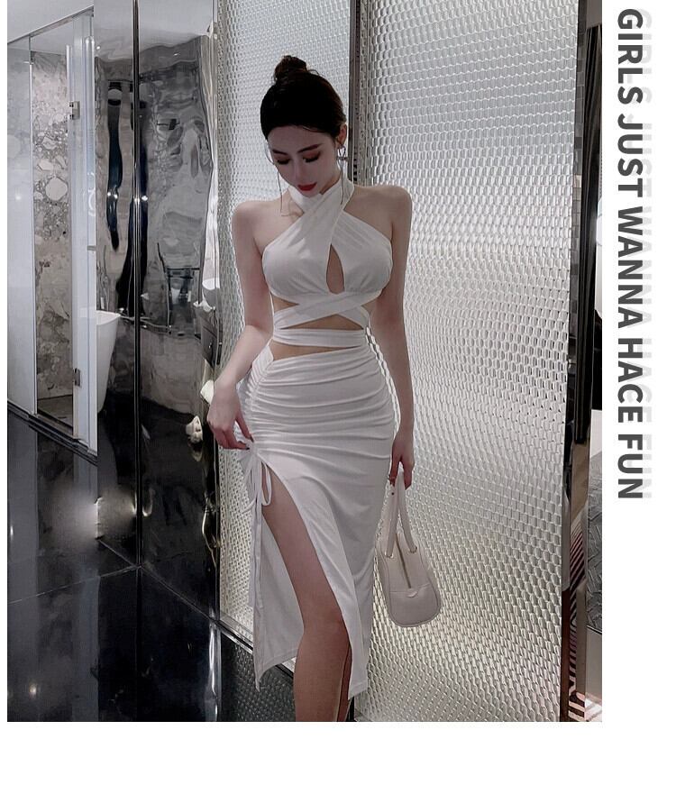 ナイトクラブ レディース ナイトワーク服 技術者作業服 スーツ 吊りネックトップ ミモレ丈スカート 2点セット yeyij70244973788