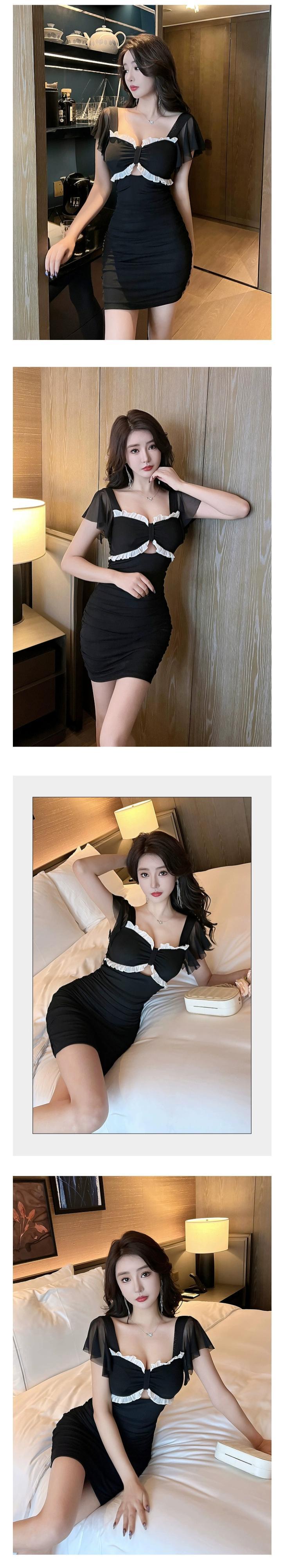 ナイトクラブの女性の夜の作業服フットバス技術者オーバーオールネット糸セクシーなフレンチスクエアカラーバッグヒップドレス スクウェア yeyij42567236986
