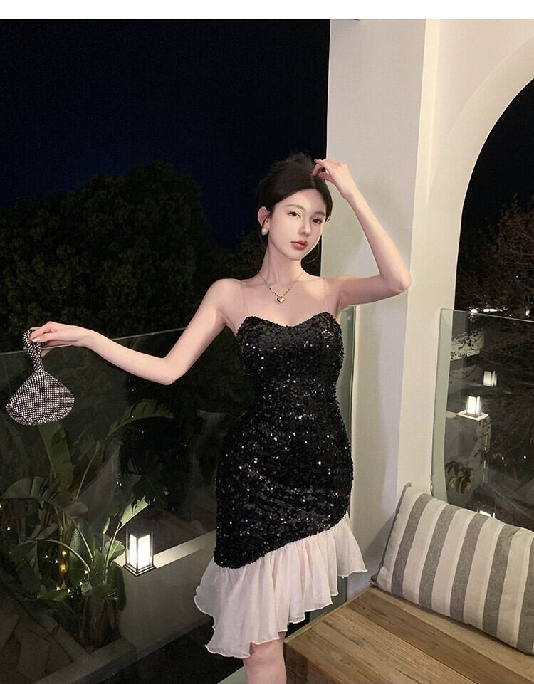 イブニングドレス女性 2023 新しいハイエンド感覚フレンチヘップバーンスタイルスパンコール宴会気質フィッシュテールサスペンダードレス yeyij70201004212