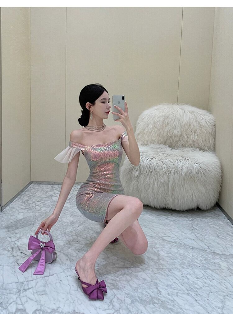 誕生日パーティードレスの女性の高級感イブニングドレス重工業カラースパンコールセクシーなワンショルダーサスペンダードレス yeyij50577879727