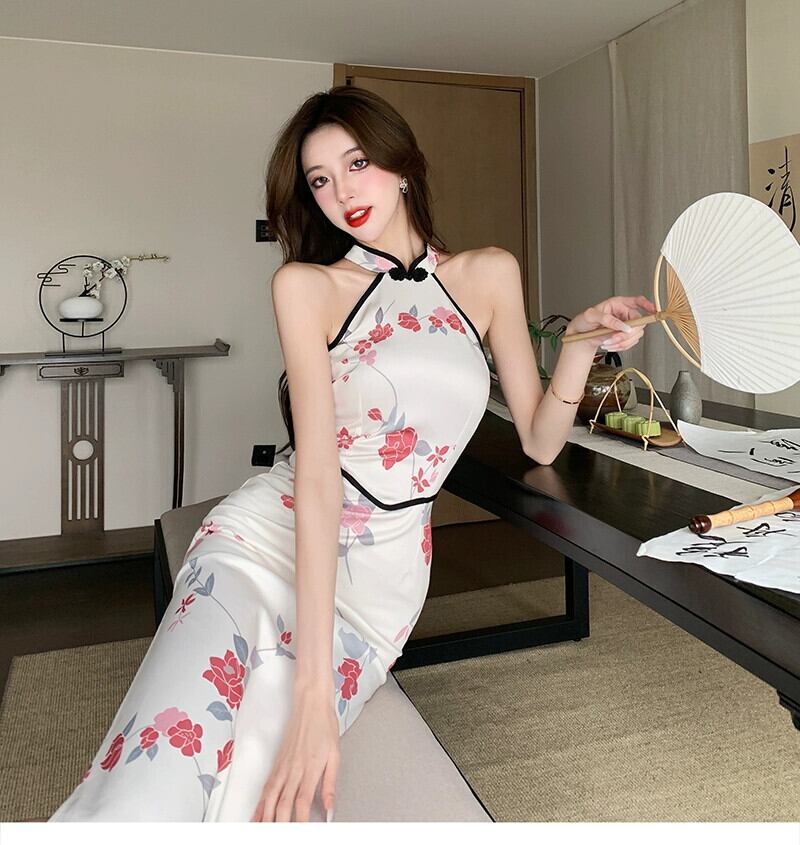 チャイナイブニングドレスの女性 2023 新しいハイエンドレトロ中国風のセクシーなストラップレスミッドレングスホルターネックドレス yeyij32039783205