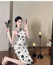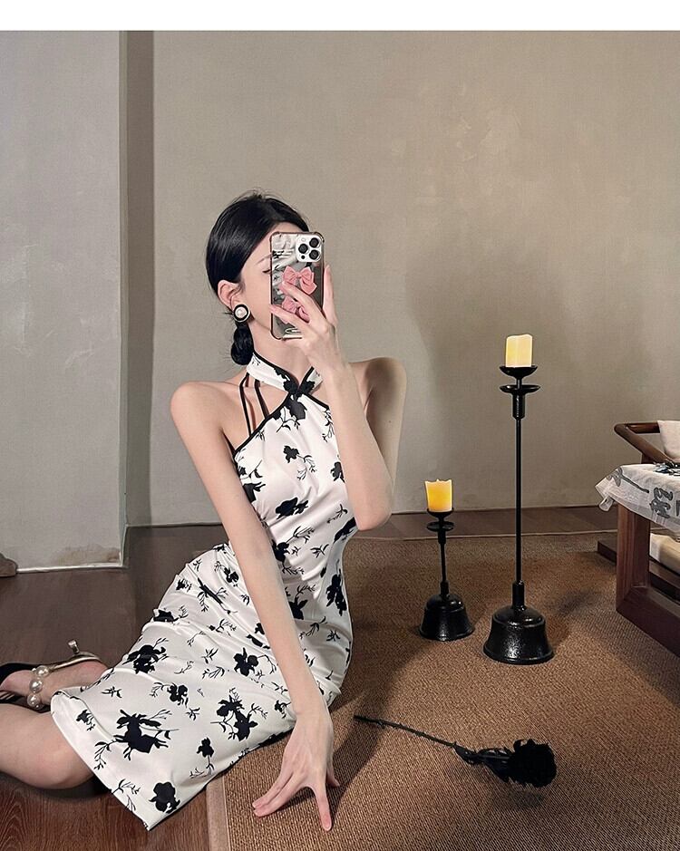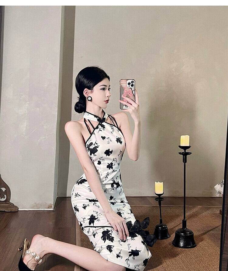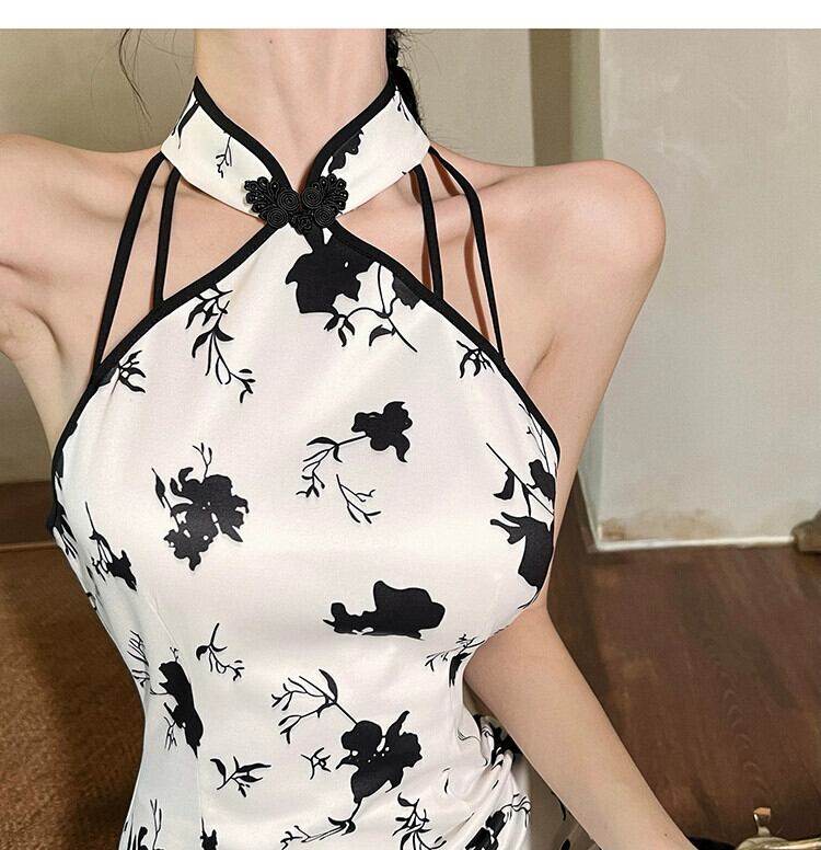 チャイナドレス若いアンカーライブハイエンドイブニングドレス修正されたセクシーなオフショルダーミッドレングスホルターネックドレス yeyij88305327871