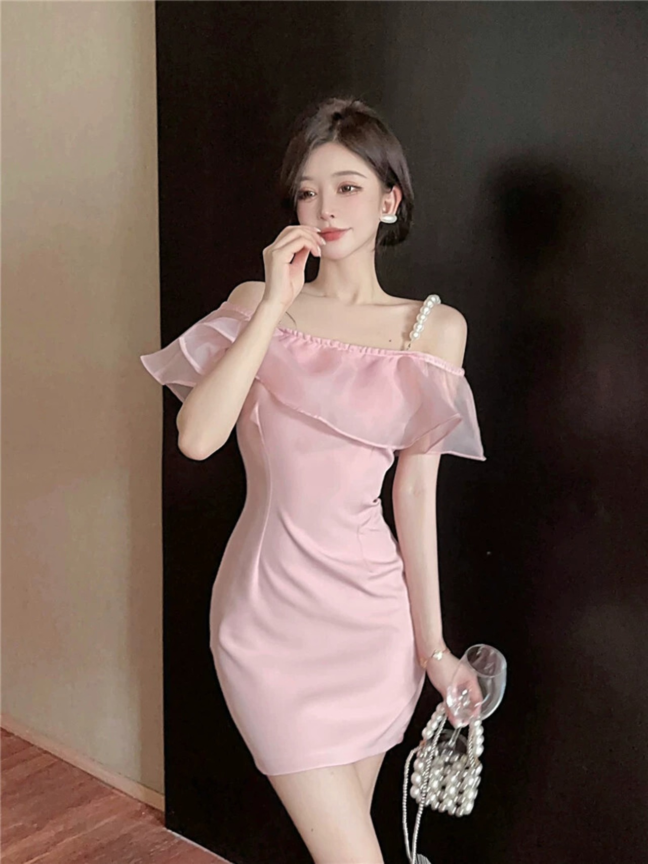 フレンチスタイルドレス生放送服女性アンカーpogenicハイエンド純粋な欲望スタイルのセクシーなワンショルダーサスペンダードレス ピュア yeyij98023755567