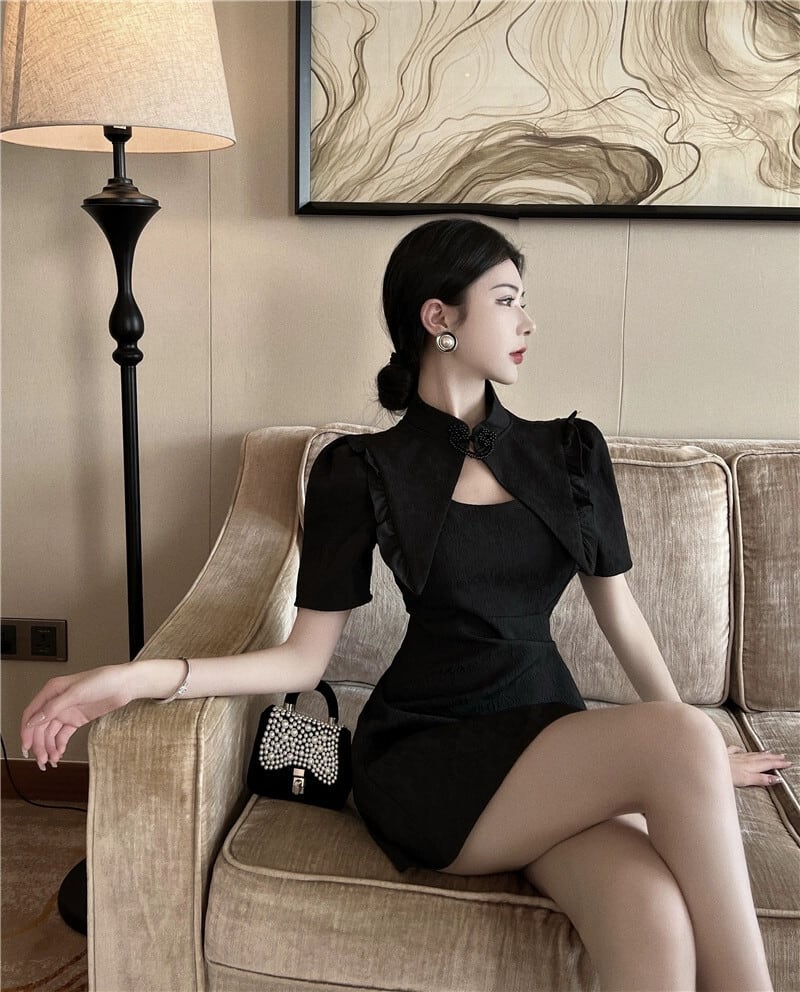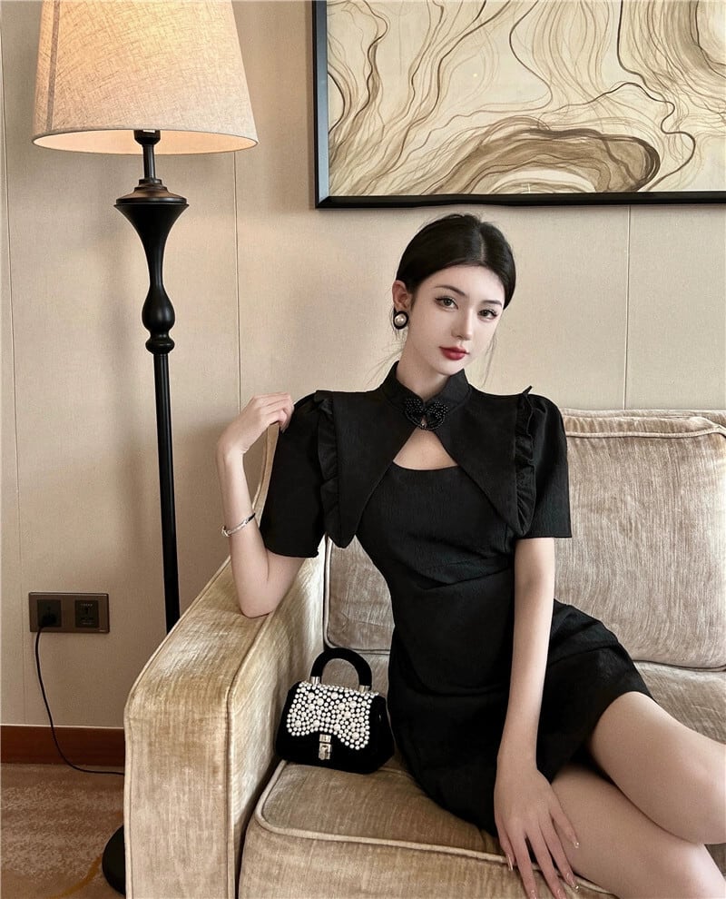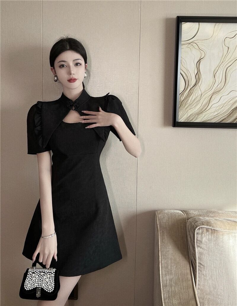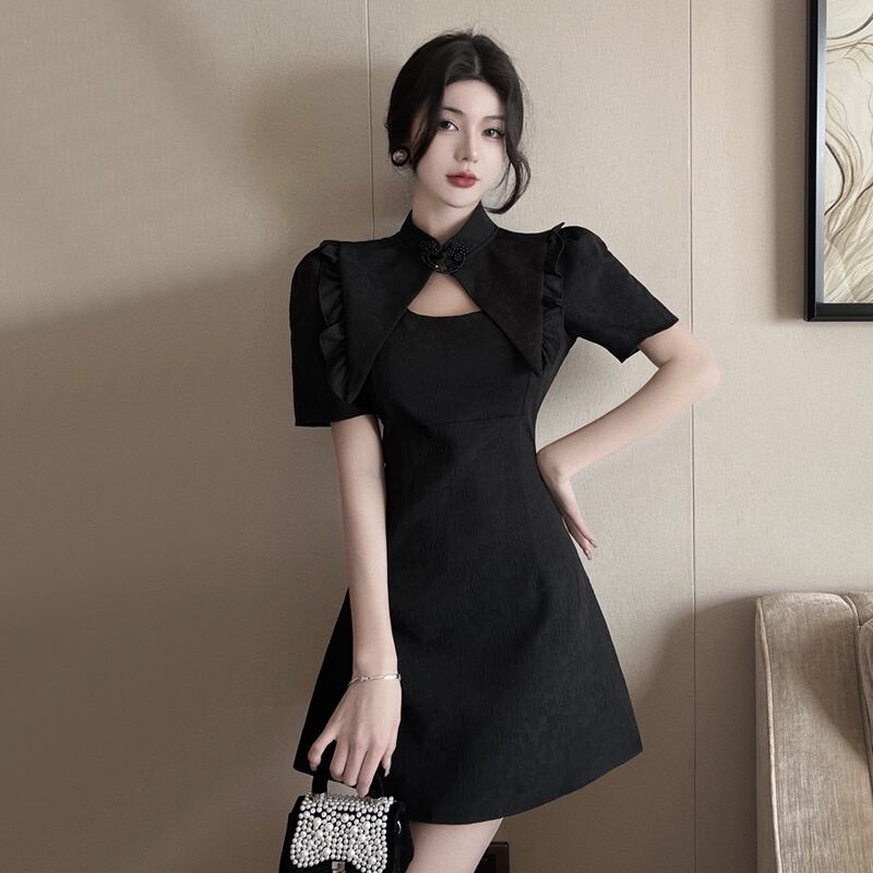 ライブ服女性アンカー pogenic ハイエンド黒若いスタイルのセクシーな中空改良されたチャイナ ドレス ブラック yeyij82626412157