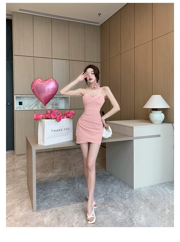 ライブ衣装、女性アンカー、ポージェニック、高級純粋感覚、フレンチフラワーネック、気質、セクシーなサスペンダードレス ピュア フラワーデザイン yeyij95799074468