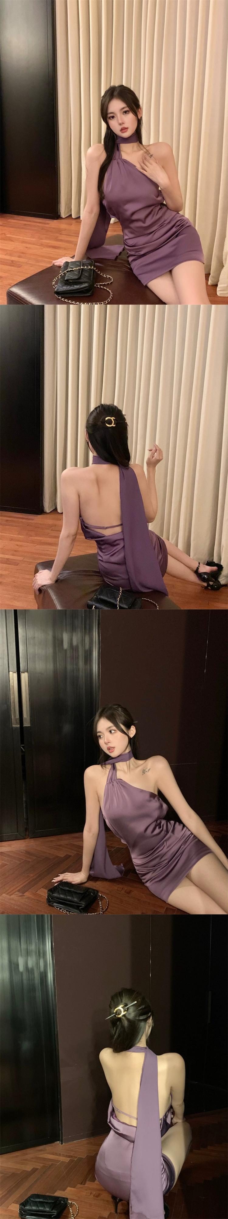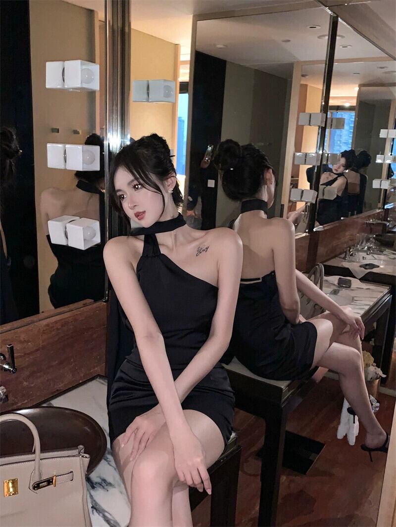 小さなドレスハイエンドライト高級ニッチナイト女性のハイエンドセンス宴会気質セクシーな背中の開いたホルターネックドレス yeyij88885881468