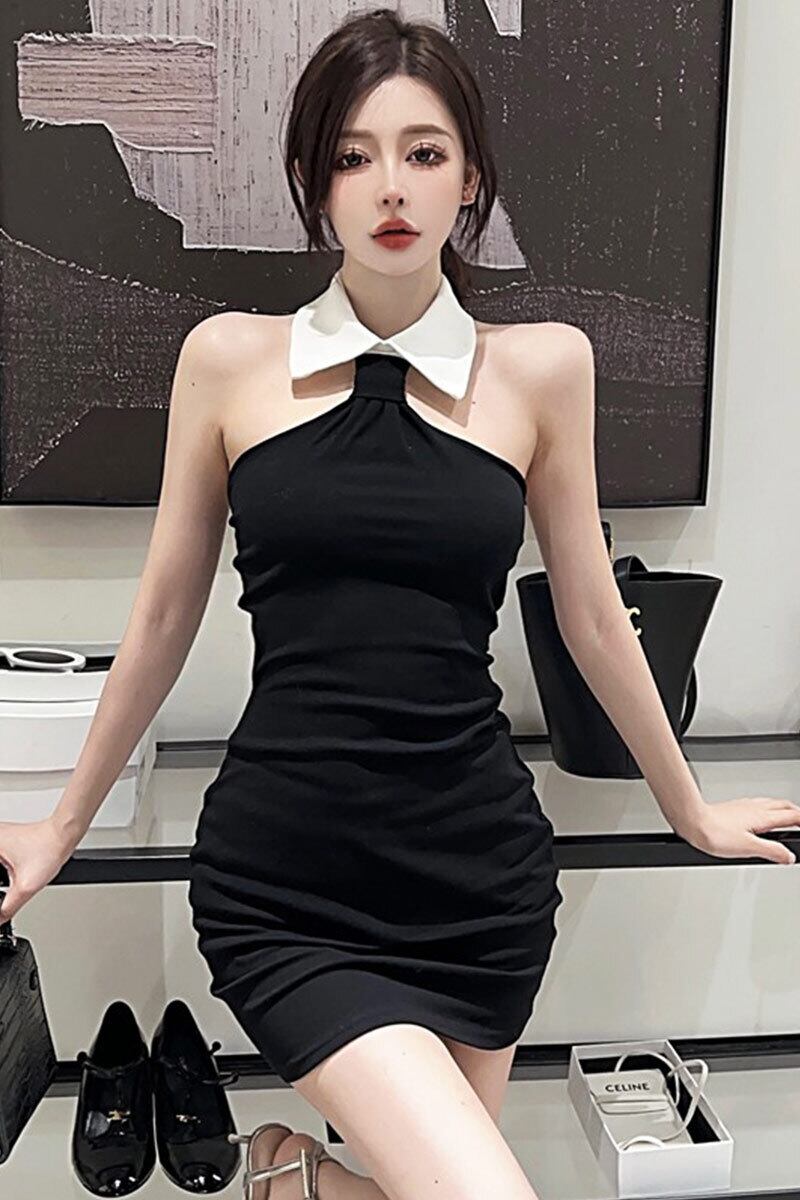 ライブ服アンカー Pogenic 純粋な欲望ホットガールセクシーなストラップレスのタイトなヒップポロカラーホルターネックドレス ピュア yeyij24025045631