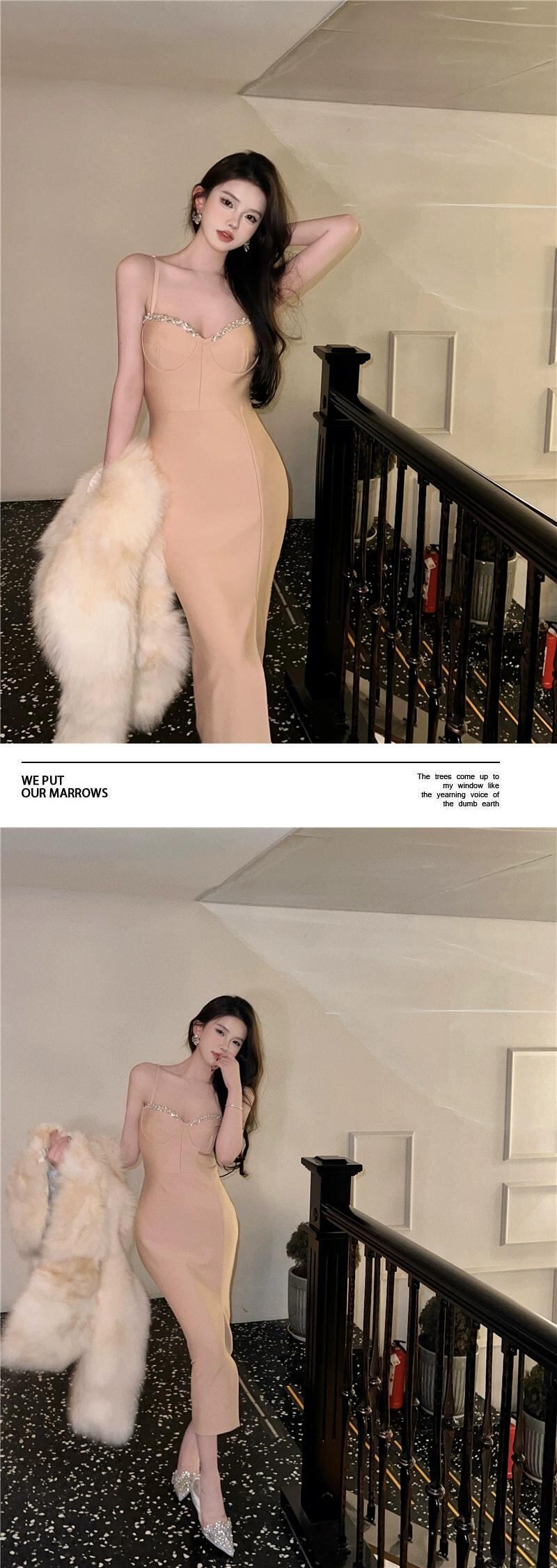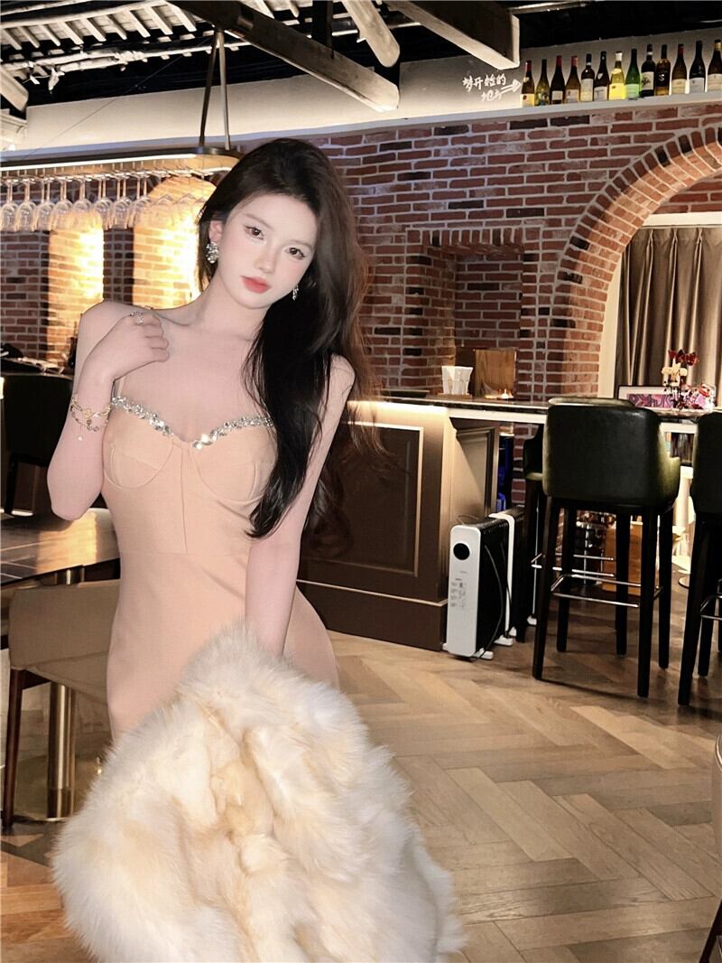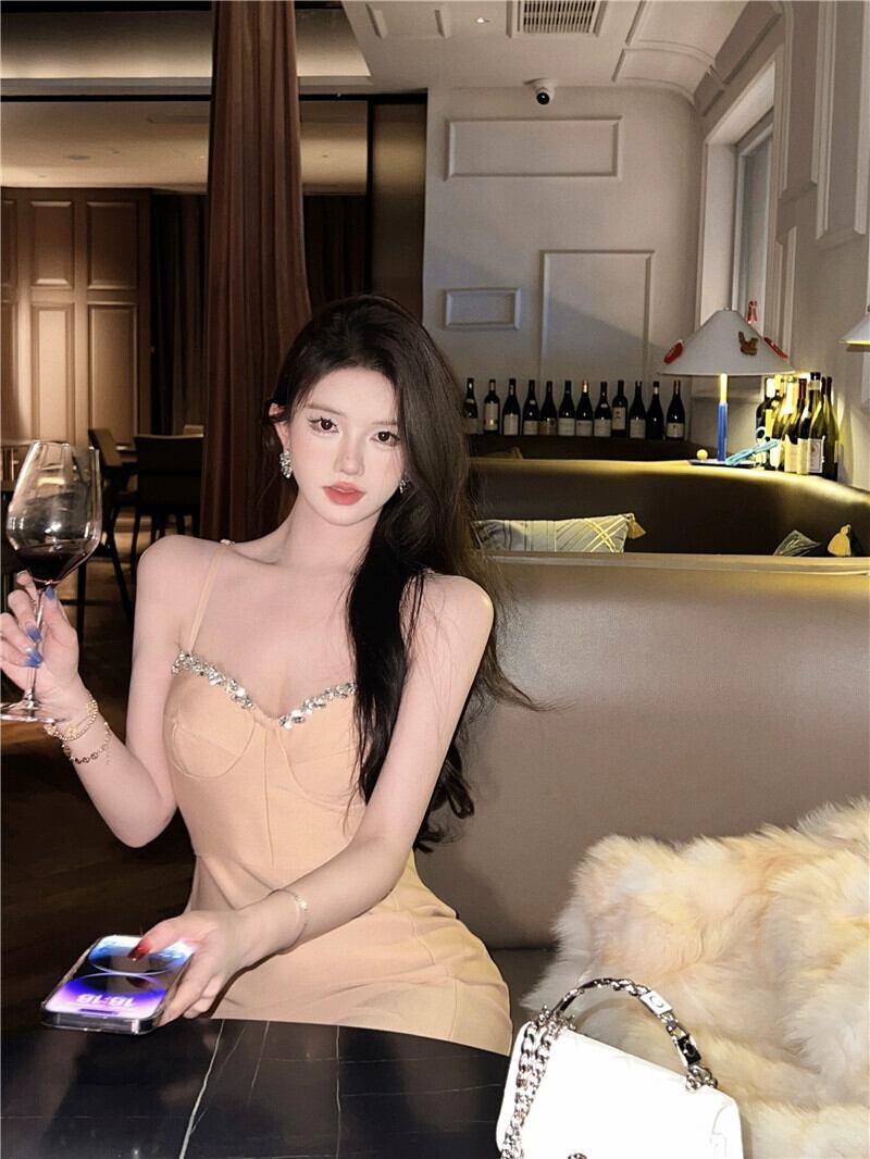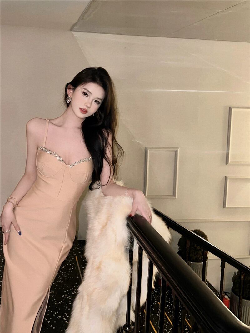 イブニングドレス ロングスカート ライト ラグジュアリー ニッチ ハイエンド ハイエンド パーティー ホリデー パーティー ダイヤモンドがちりばめられたセクシーなサスペンダードレス yeyij20976926581