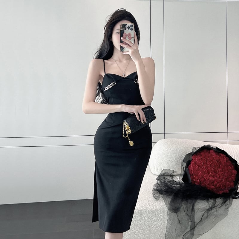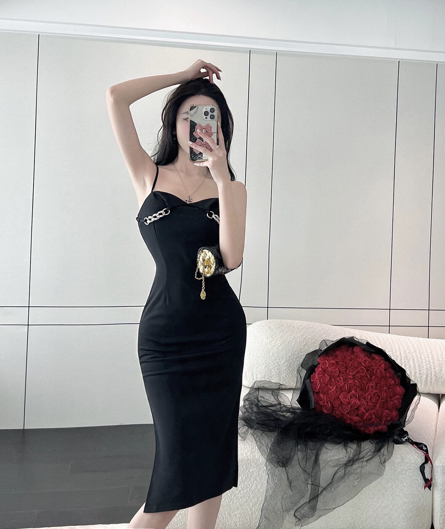 - 小さな黒いドレスの端の感覚、女性のハイエンドのパーティードレスの感覚は、通常気質のセクシーなサスペンダードレスを着ることができます ブラック yeyij88550082729
