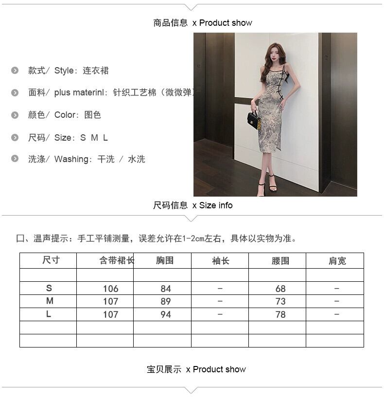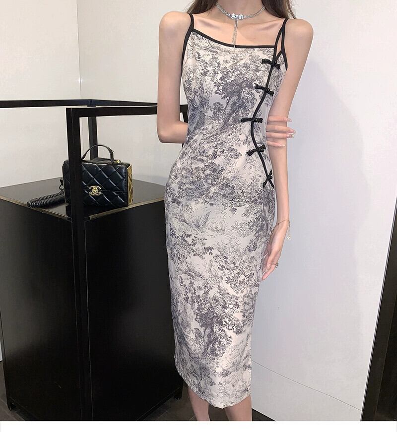 シーサイドビーチホリデードレス女性の夏のハイエンド中国風レトロプリントミッドレングスチャイナサスペンダードレス サマー 夏物 yeyij88548528655