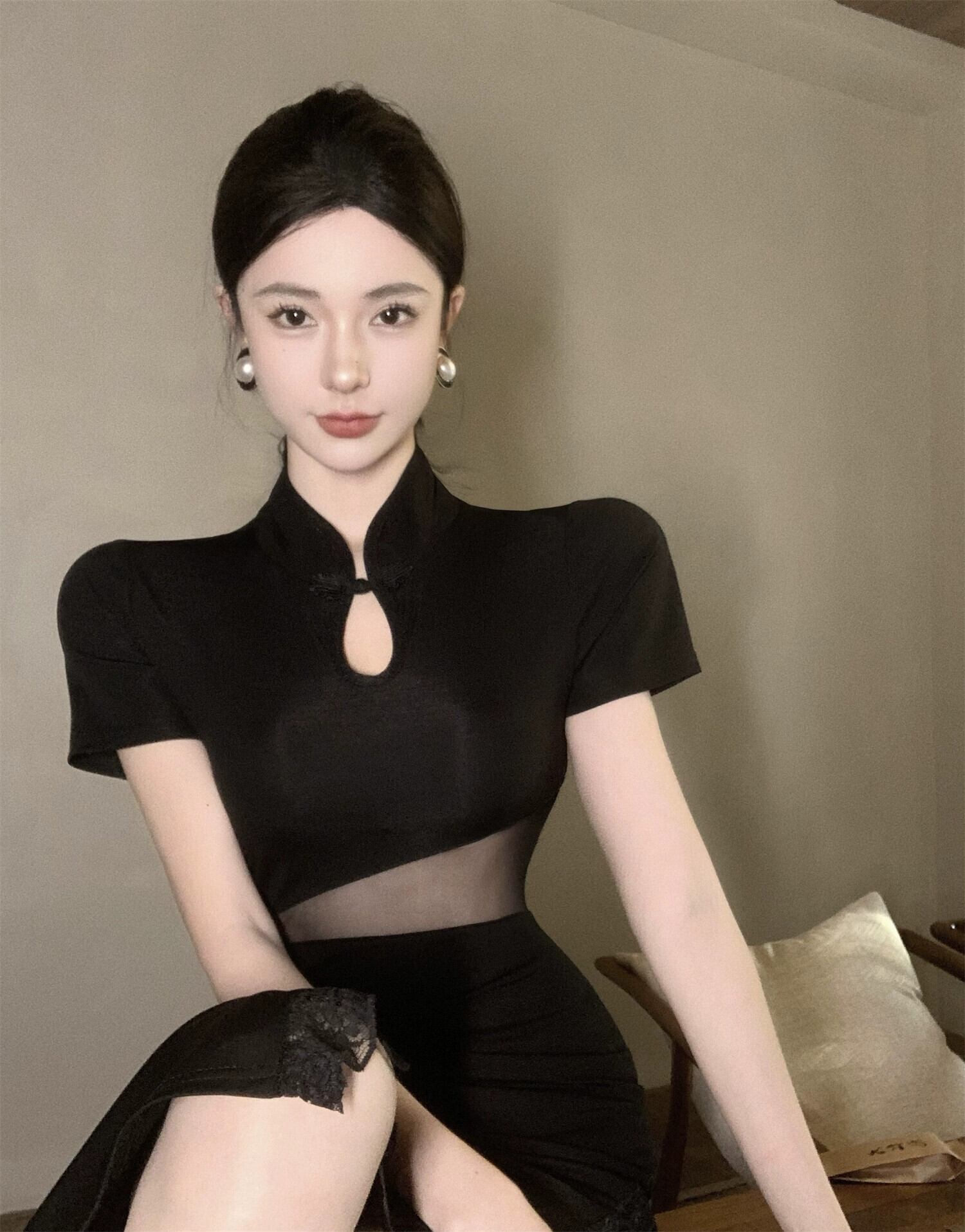 ライブ服アンカー Pogenic 高度な若いセクシーな中空メッシュステッチ改良されたチャイナ ドレス yeyij64712413560