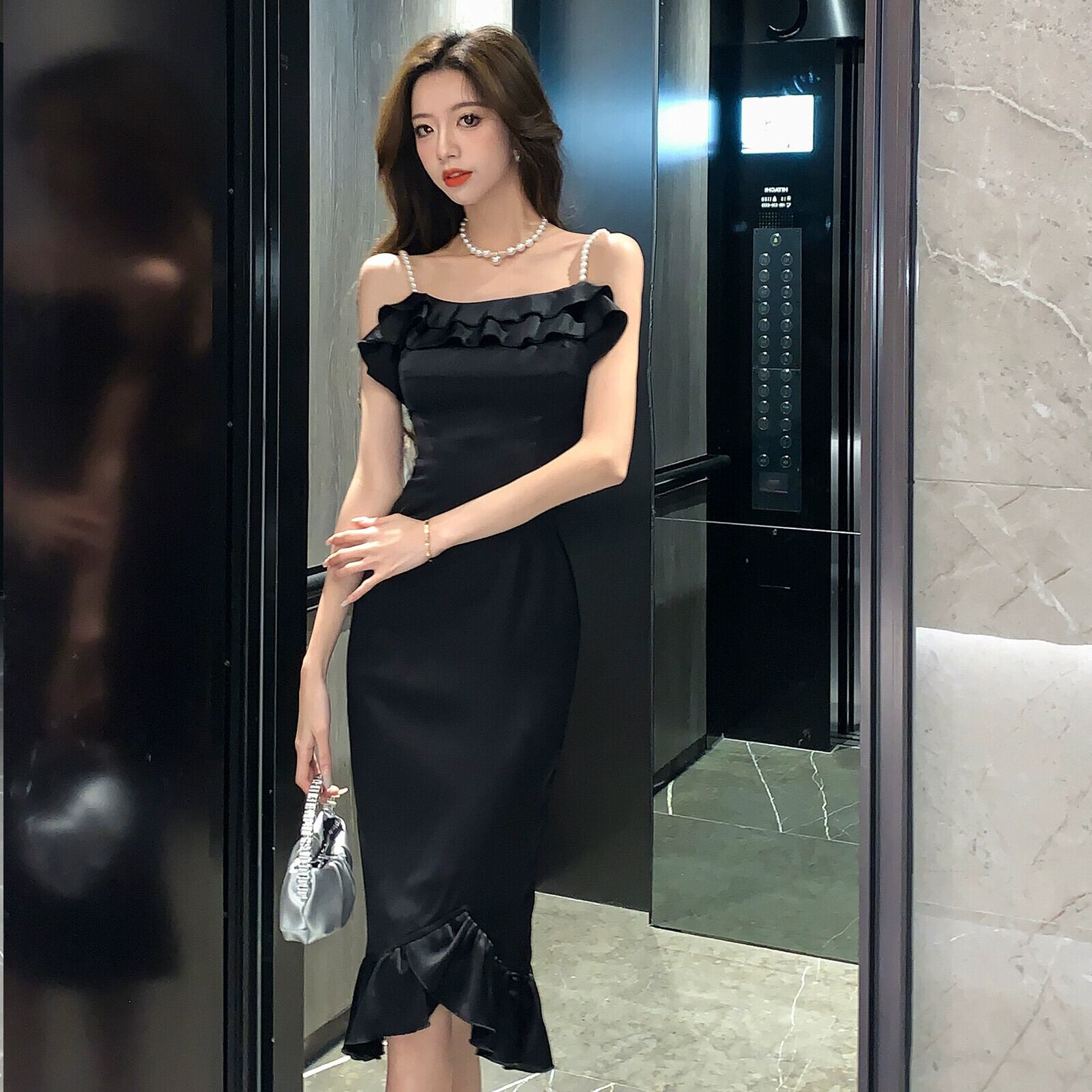 フレンチイブニングドレス女性のハイエンド感覚は通常セレブ気質のセクシーなミッドレングスのフィッシュテールサスペンダードレスを着用できます yeyij85162107534