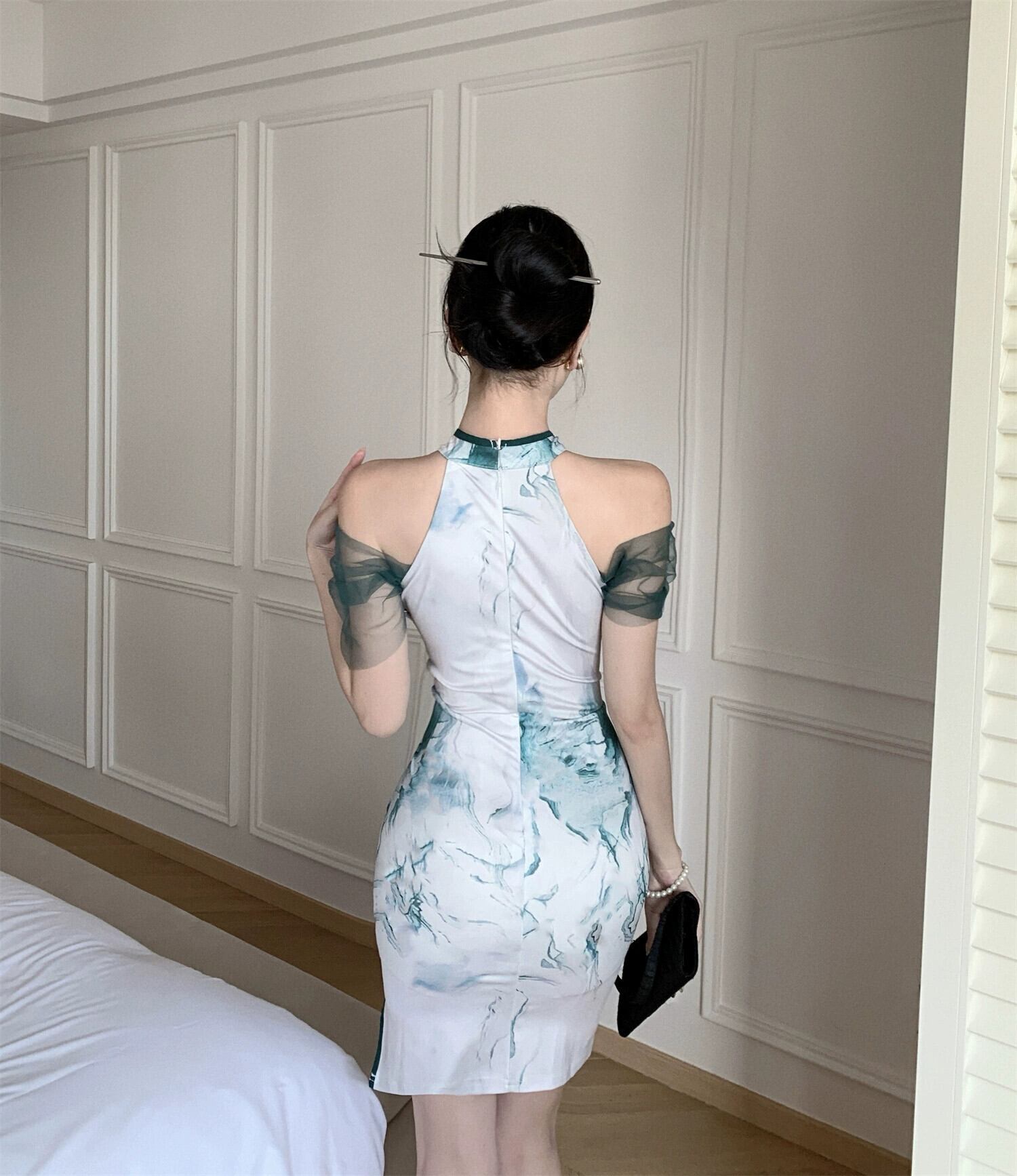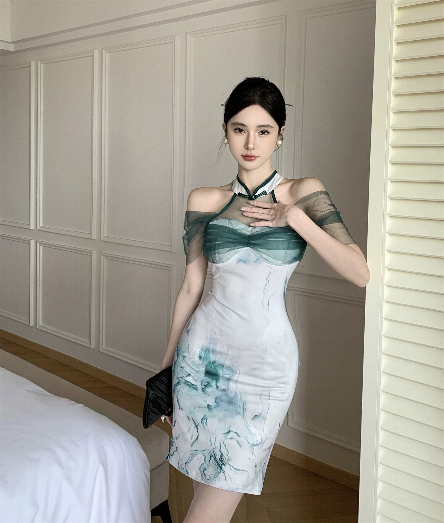 ライブ服アンカー Pogenic ヤングスタイルセクシーなメッシュステッチストラップレスホルターネックチャイナドレス yeyij21648234553