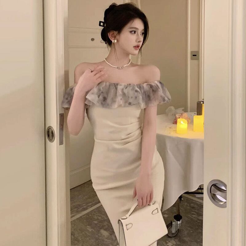 フレンチイブニングドレス女性 2023 新しいハイエンド海辺ビーチ休暇セクシーなワンショルダーチューブトップドレス yeyij11601615175