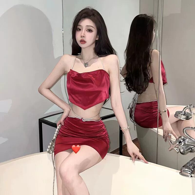 ナイトクラブの女性のナイトクラブディスコスーツセクシーなストラップレスバックレスホルターネックベストトップ + ヒップショートスカート yeyij71873215539
