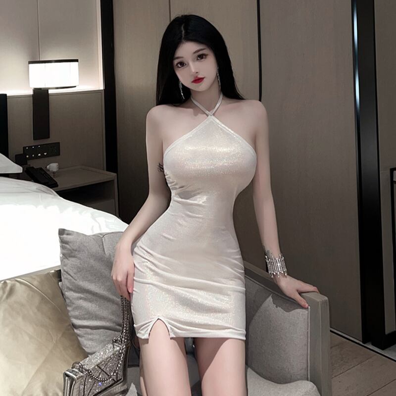 ナイトクラブの女性のナイトクラブナイトクラブディスコ DJ 作業服光沢のあるファッションセクシーなホルターストラップホルターネックドレス yeyij92200169930