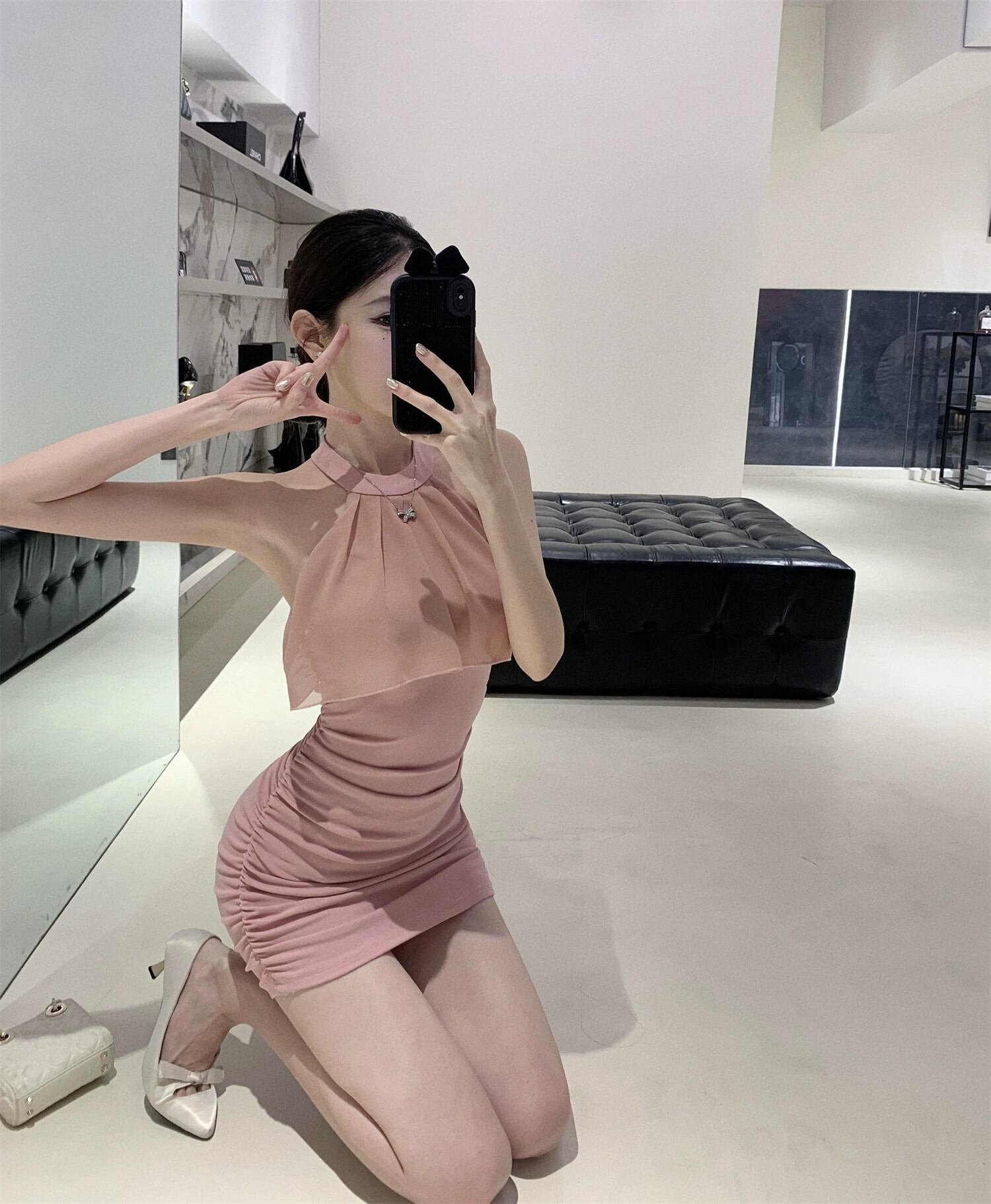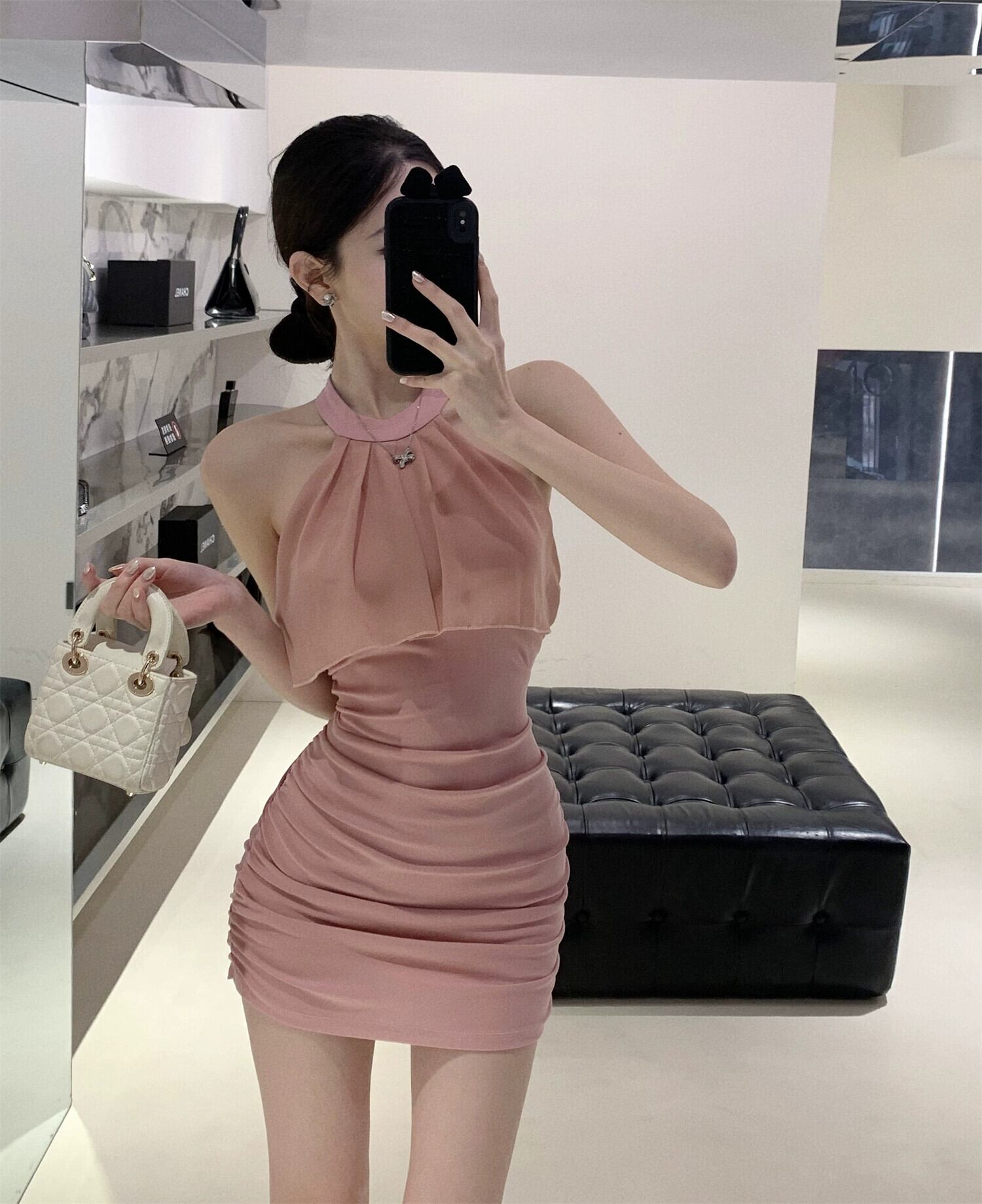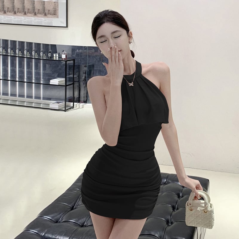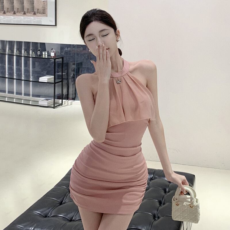 ライブ衣装、女性アンカー、ポージェニック、ハイエンド、純粋な欲望、気質、セクシーなバッグヒップストラップレスホルターネックドレス ピュア yeyij28235704749
