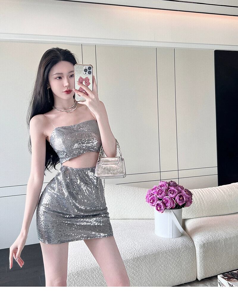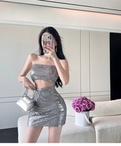 スパンコールドレススカートレディースハイエンドセンスナイトバーダンスセクシーな中空バッグヒップチューブトップドレス yeyij23799618944