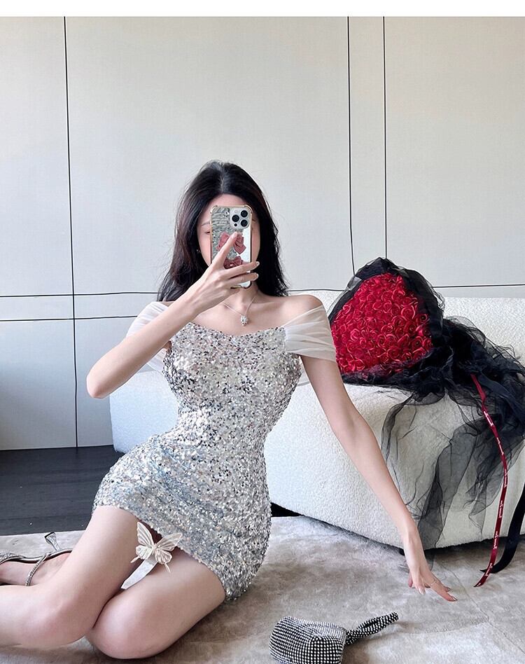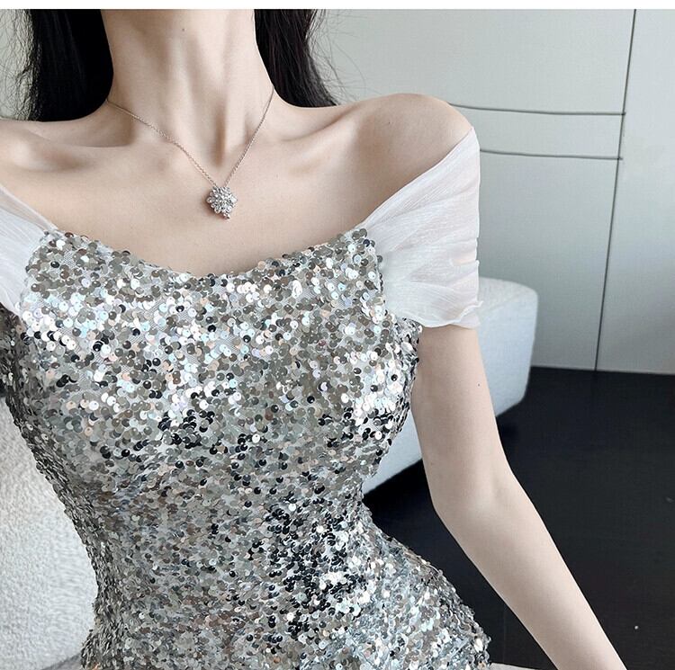 フランスのイブニングドレスの女性の 2023 新しいハイエンド重工業スパンコール気質セクシーなワンショルダーバッグヒップドレス yeyij18020689639