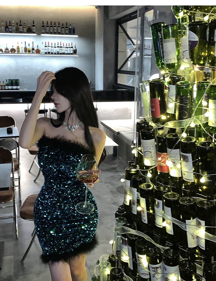 -エンドドレススカートセクシーなフェザースパンコールチューブトップスカートスリムで薄い純粋な欲望スタイルバッグヒップドレス ピュア yeyij20919825343
