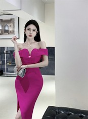 イブニングドレス スカート ハイエンド ライト ラグジュアリー ニッチ ハイエンド 女性らしさ セクシー ワンショルダー ミッドレングス オフショルダー ドレス yeyij68958047777