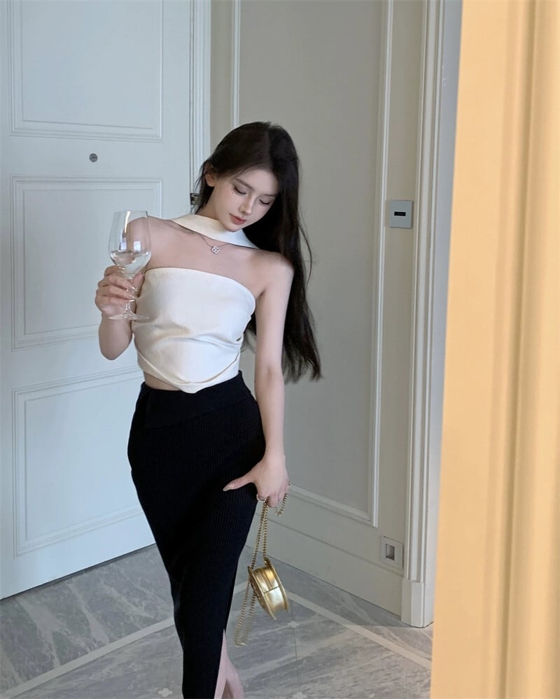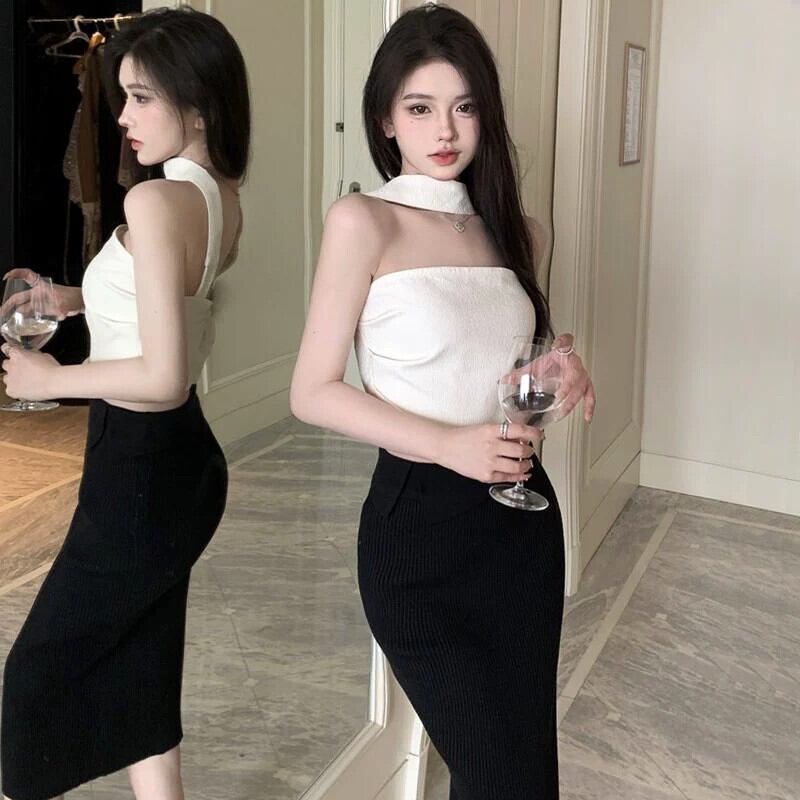 インターネットセレブ 2023 新しいスーツ夏の女神ファンセクシーなチューブトップホルターネックベストトップ + ミドル丈スカート サマー 夏物 yeyij11259403668