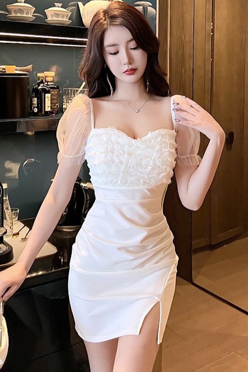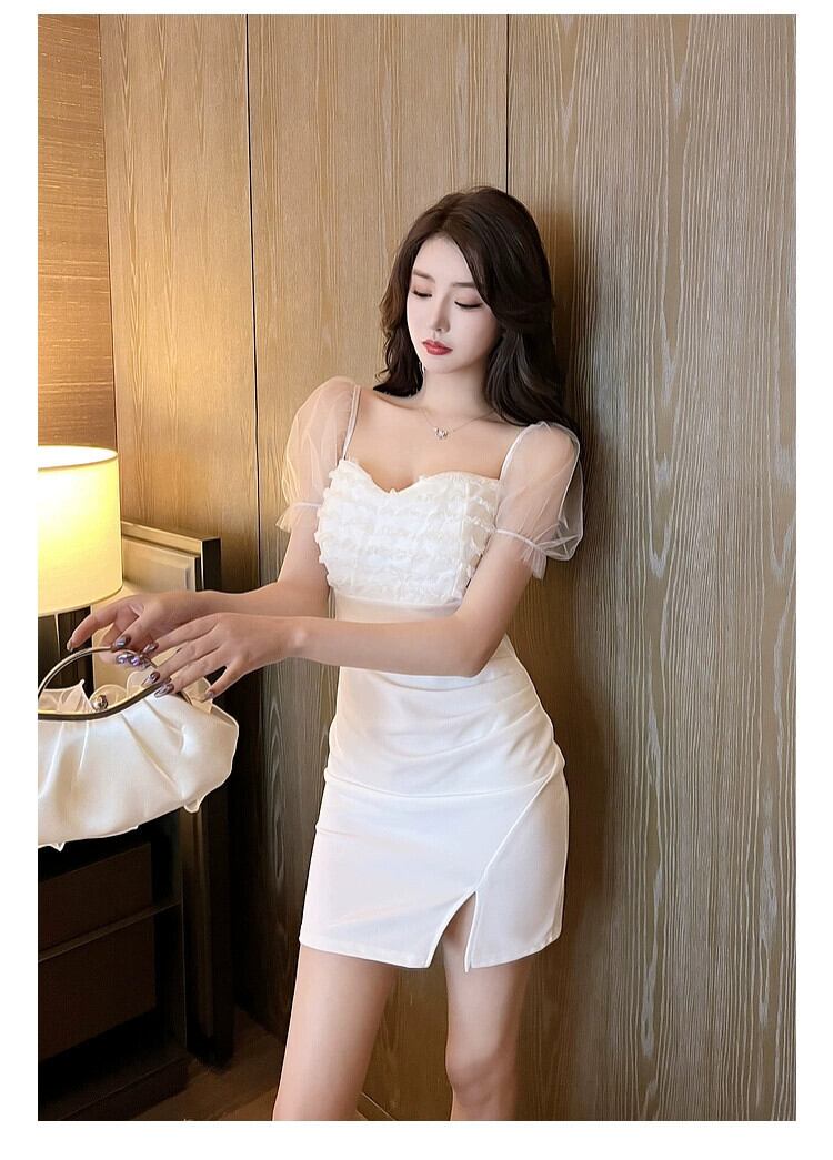 ナイトクラブの女性の夜の作業服オーバーオールフレンチセクシーなスクエアカラーメッシュスプライシング半袖バッグヒップドレス スクウェア yeyij94441598524
