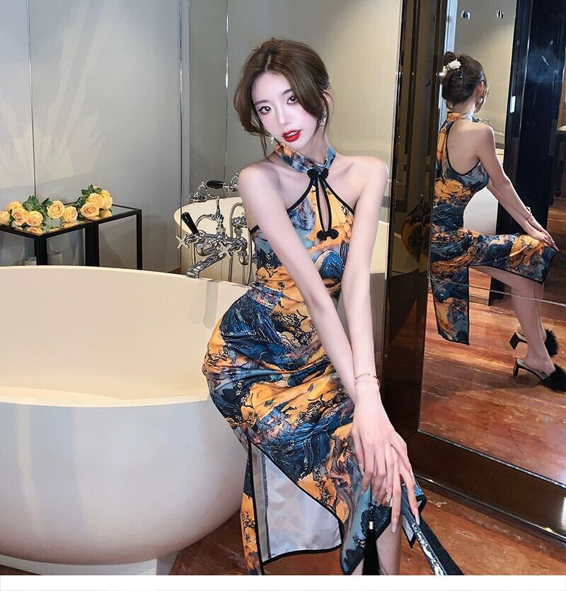 チャイナイブニングドレスハイエンドライト高級ニッチスモールドレスパーティー気質中国風のセクシーなストラップレスホルターネックドレス yeyij33687448909