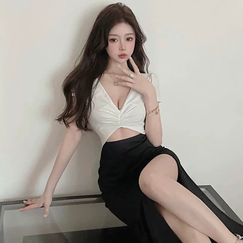 イブニングドレスロングスカートナイトクラブ女性の夜の作業服気質セクシーなローカット深い V ネック中空半袖ドレス Vネック yeyij71180956656