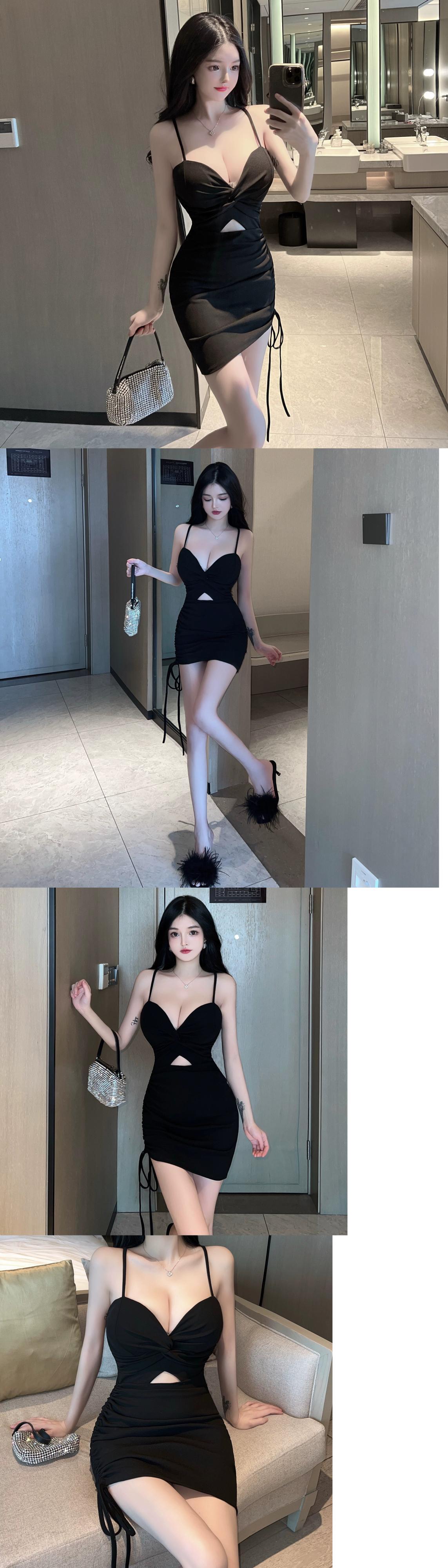 ナイトクラブの女性の夜の作業服技術者オーバーオールショートスカート中空セクシーなローカット深い V ネックサスペンダードレス Vネック yeyij35949338651