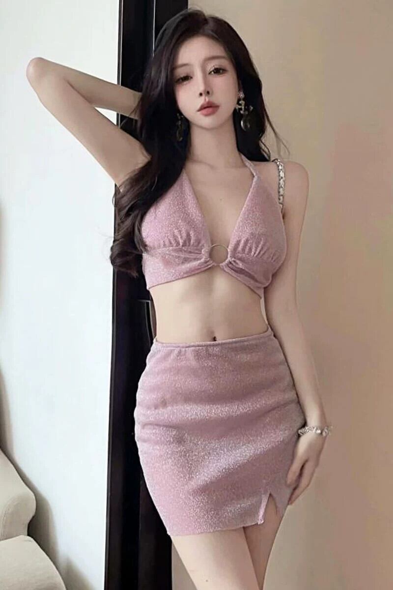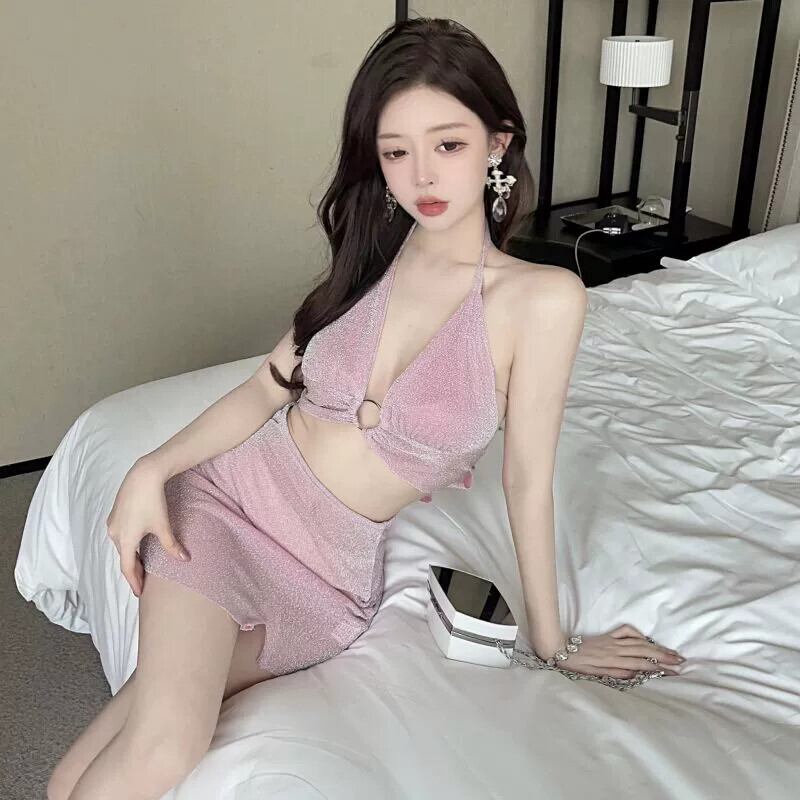 ナイトクラブレディースナイトワーク服スーツおへそ出しセクシーショートトップ+ヒップ付きショートスカートの2点セット yeyij61005655375