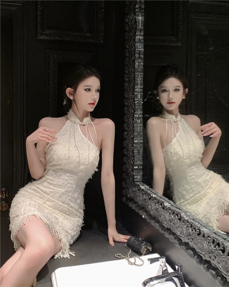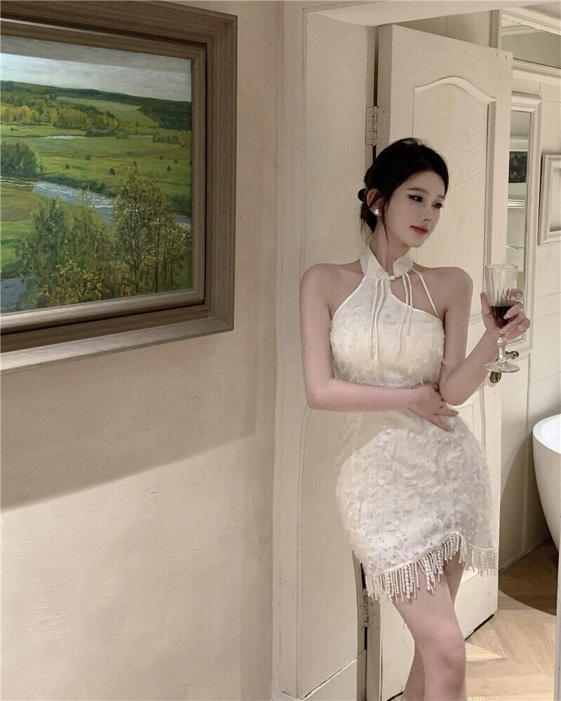 若いチャイナドレスストラップレスホルターネックドレス女性の夏の白いスーパー妖精気質純粋な欲望の誕生日ドレス ホワイト サマー 夏物 ピュア yeyij80986674727