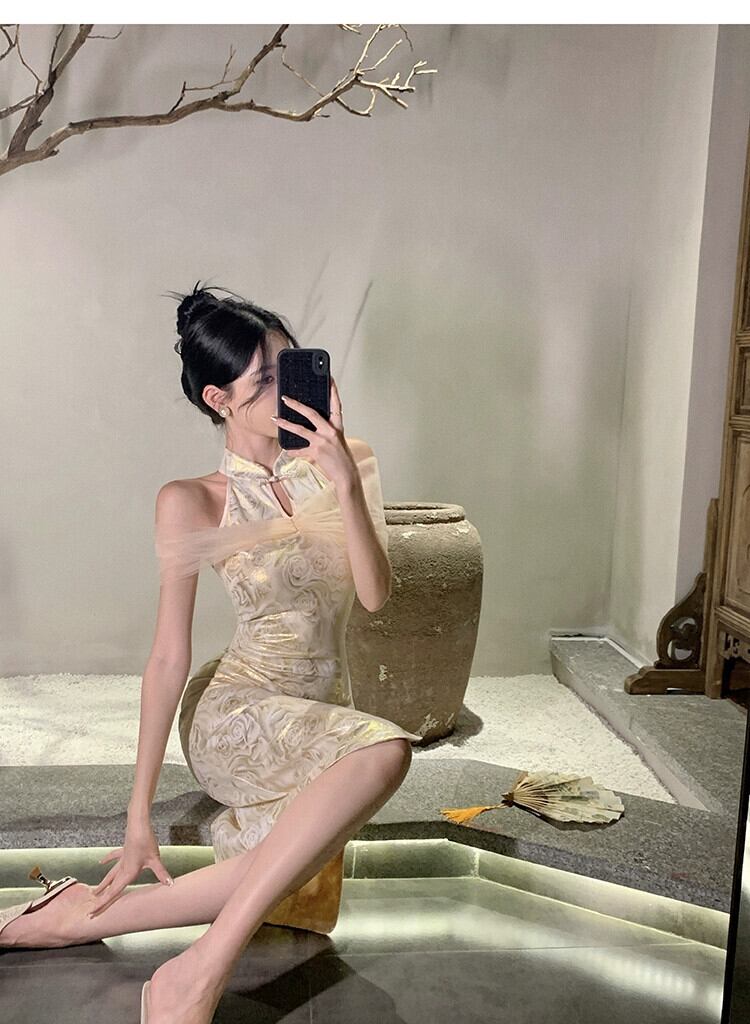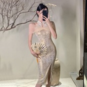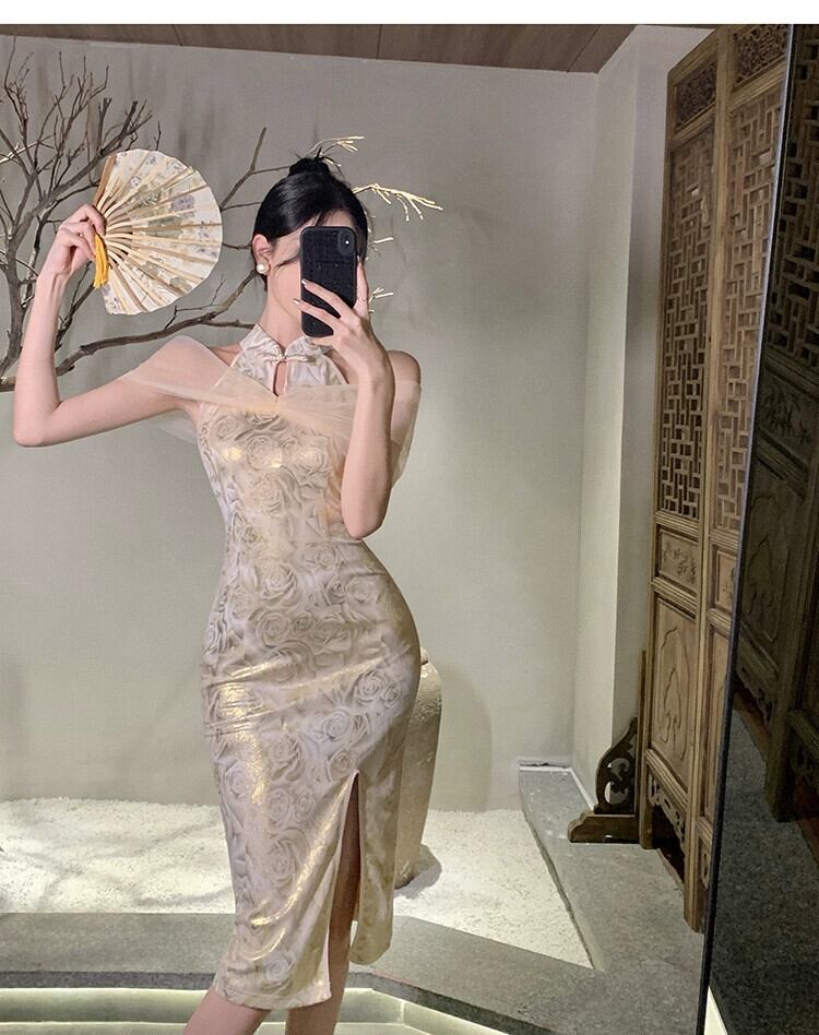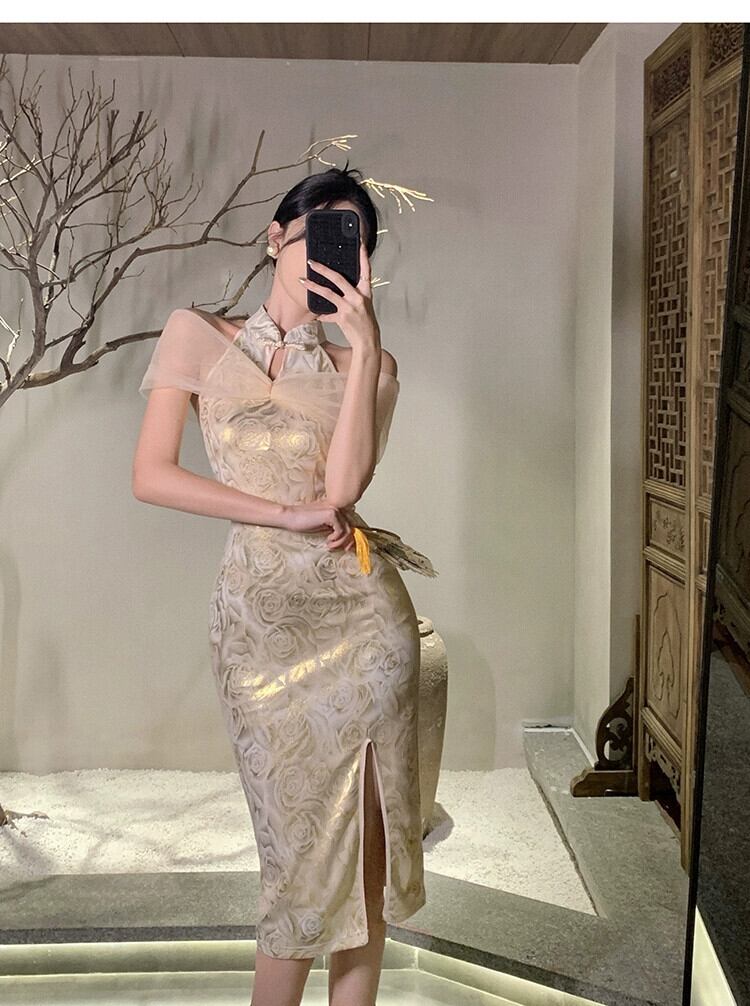 ライブ服女性アンカー服セクシーな光沢のあるブロンズ若いチャイナドレス改良版ドレス yeyij4566837818