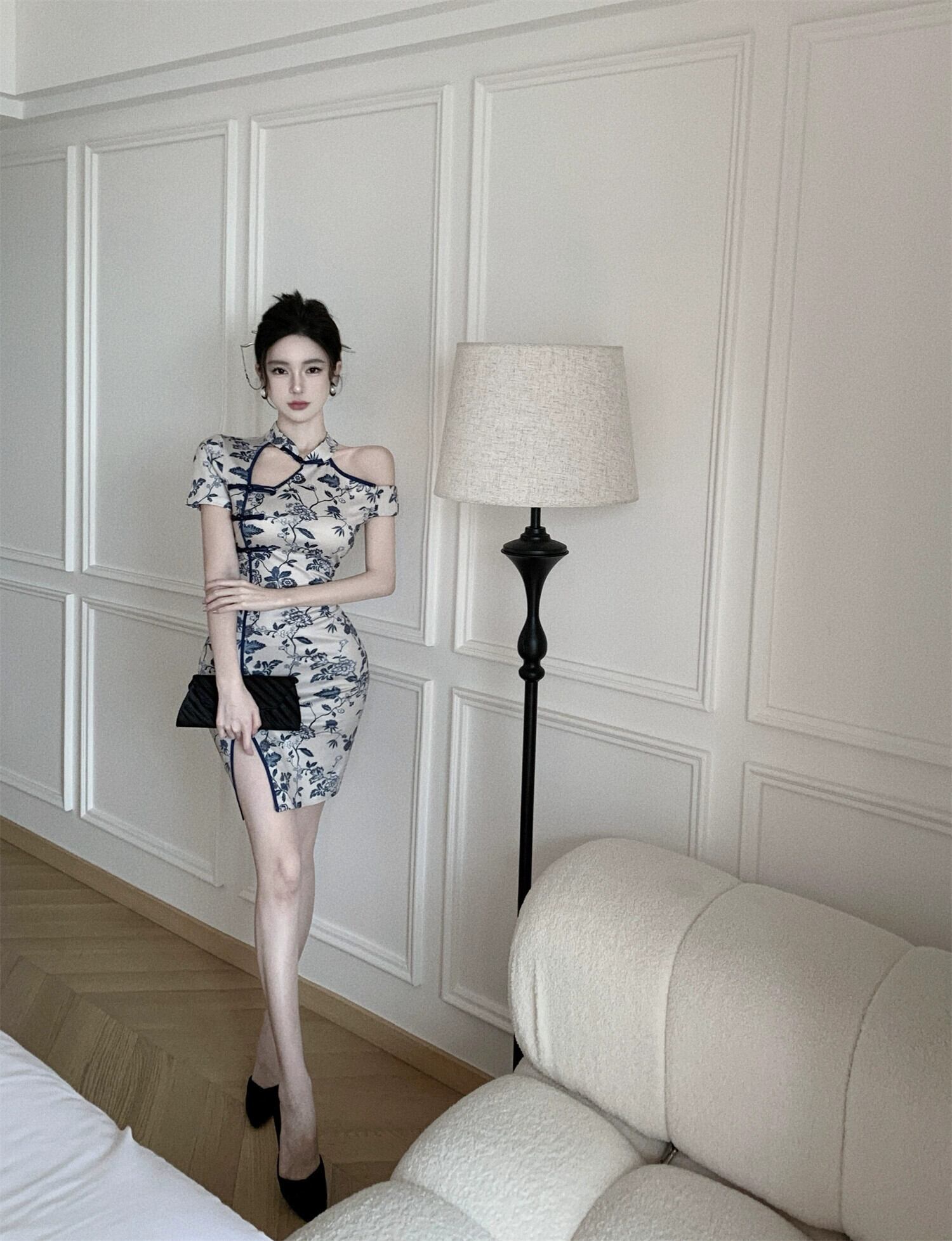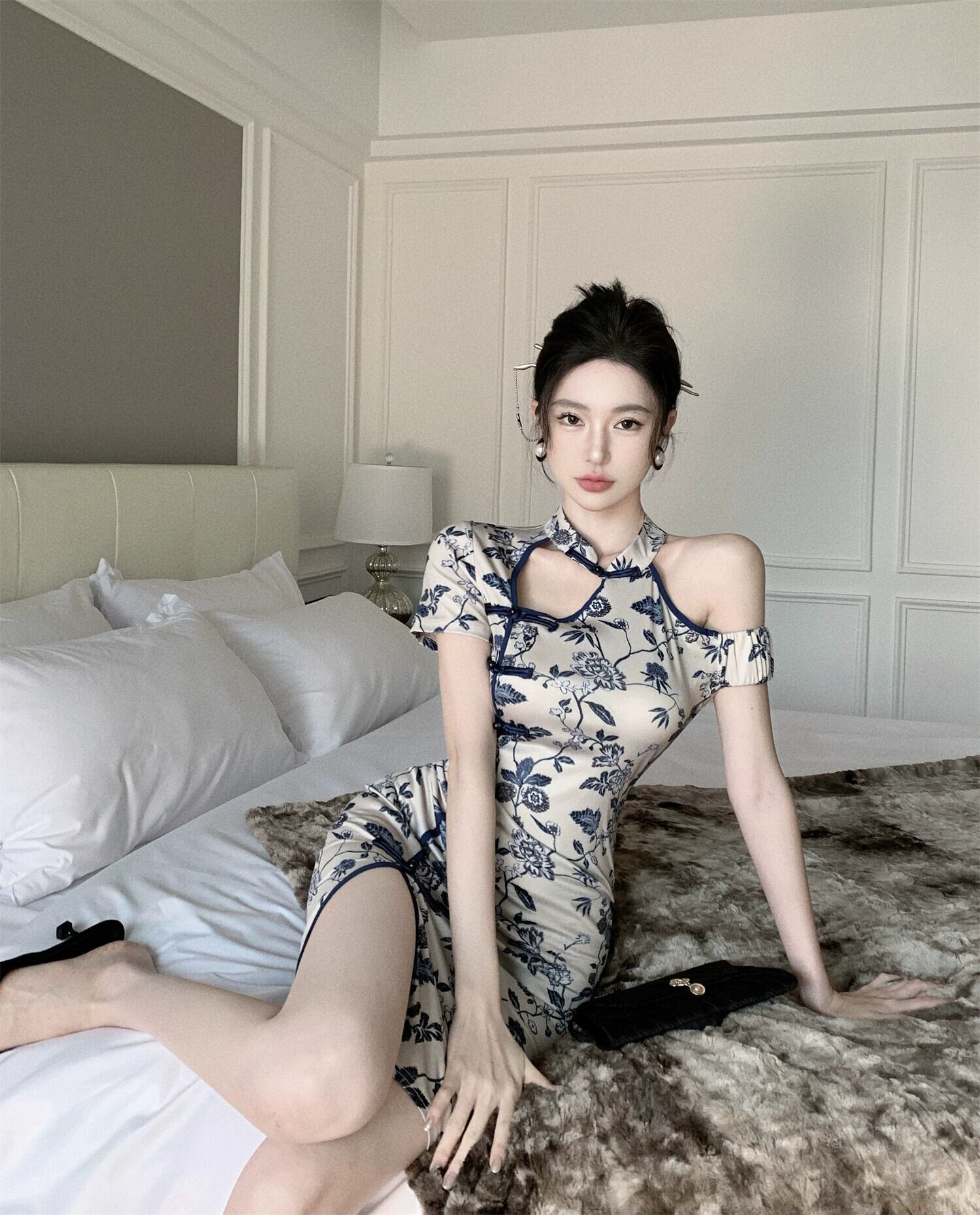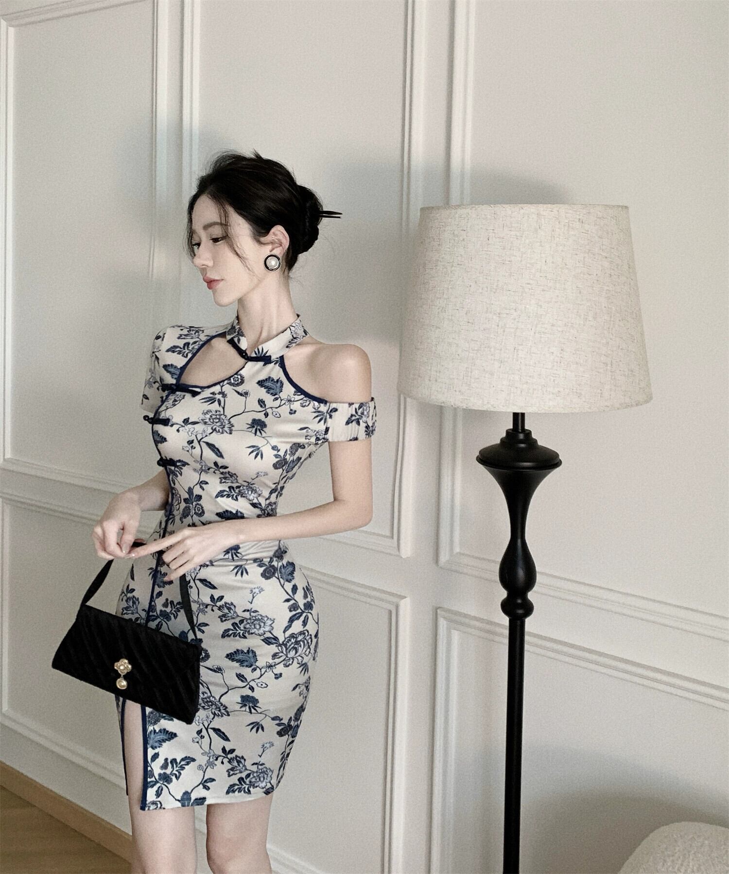 中国風のチャイナドレス 2023 新しいアンカー改善された若いセクシーな中空ストラップレスホルターネックドレス yeyij41713551785