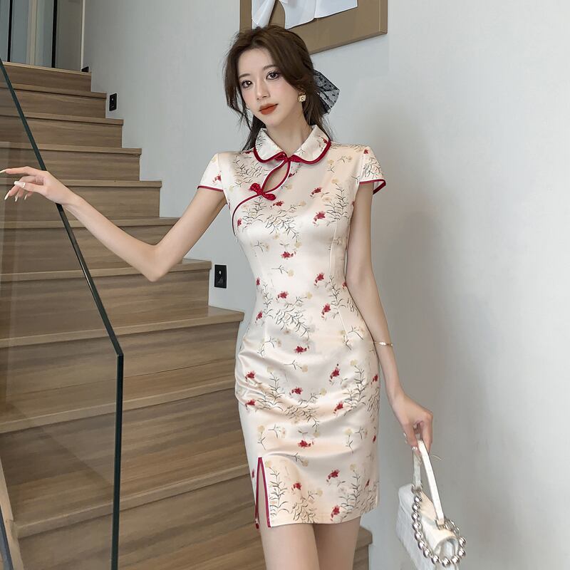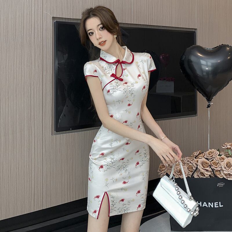 ライブ服女性アンカー服 pogenic セクシーな若い花柄ショート チャイナ ドレス改良版 yeyij66371380358