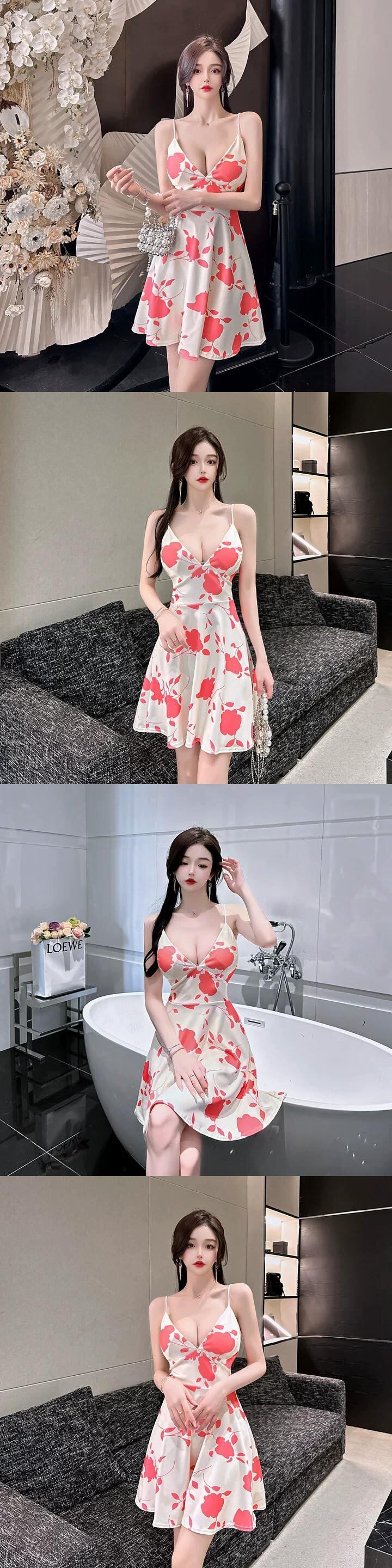 ナイトクラブの女性の夜のフィールド技術者作業服セクシーなローカット深い V ネックウエスト痩身ビッグスイングサスペンダードレス Vネック yeyij39036208097