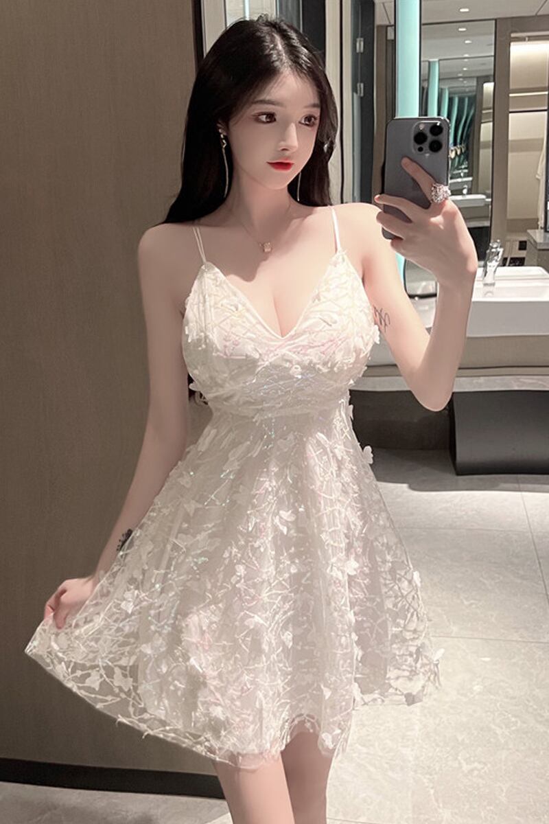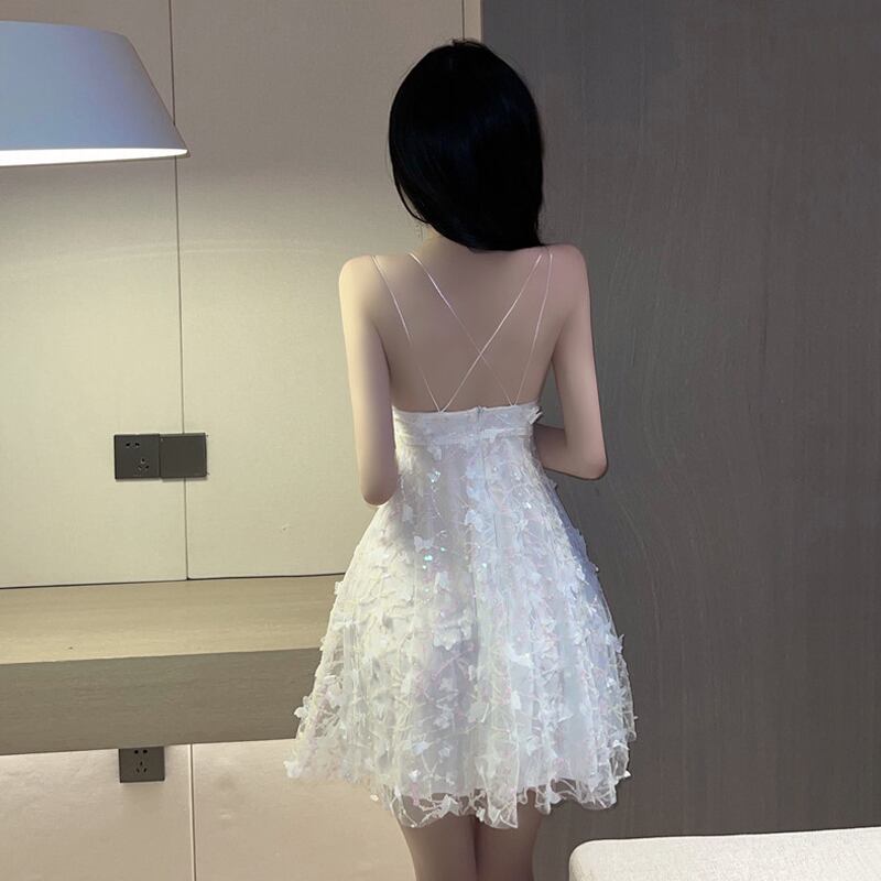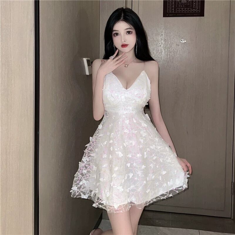 ドレス大人のフレンチスーパーフェアリーメッシュ誕生日ドレスセクシーなVネックホワイトふくらんサスペンダードレス yeyij43865258566