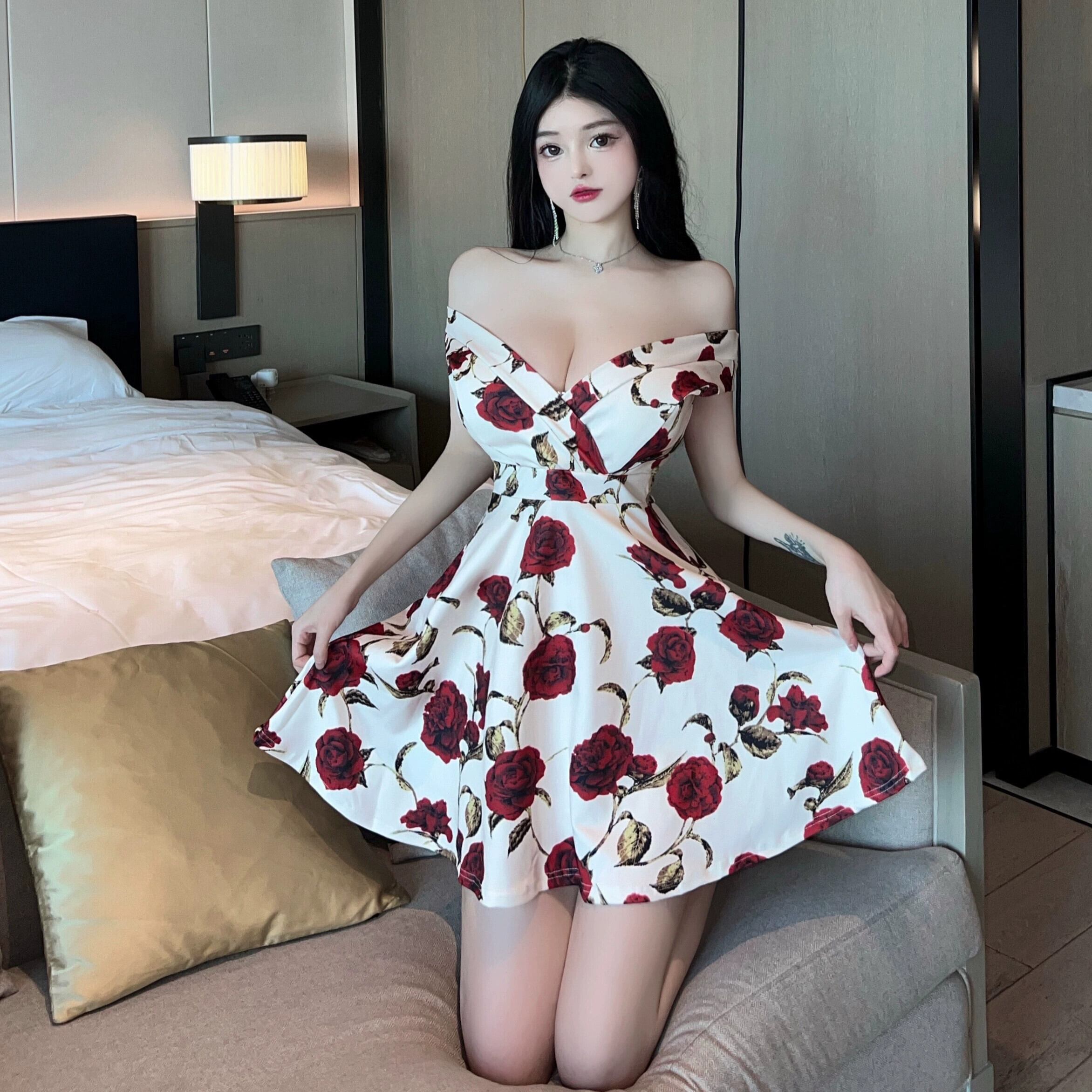 ナイトクラブドレスナイトフィールド婦人服フットバス技術者作業服セクシーな V ネックスリムカバー腹ノースリーブショートスカート Vネック yeyij75587031595