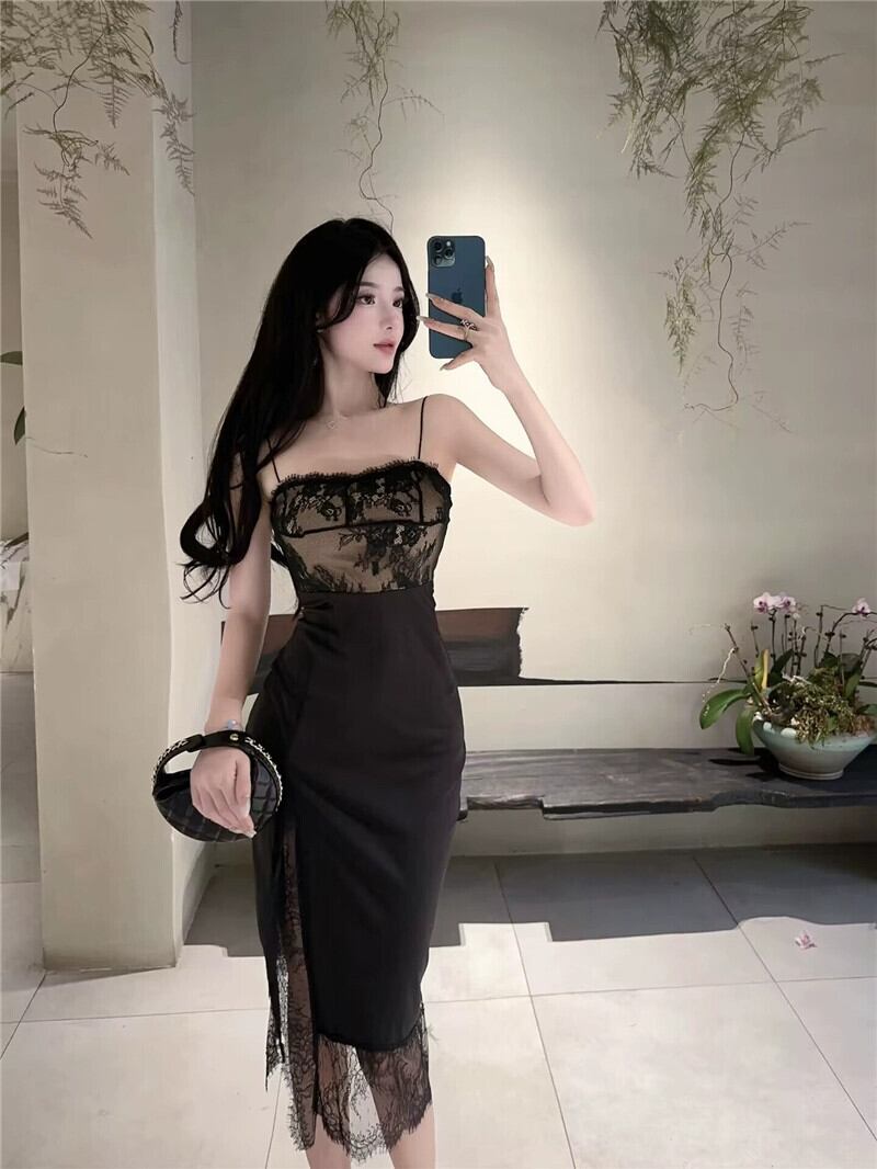 イブニングドレスの女性 2023 新しいハイエンドレースステッチ気質セクシーなスリットミッドレングスサスペンダードレス yeyij47337791120