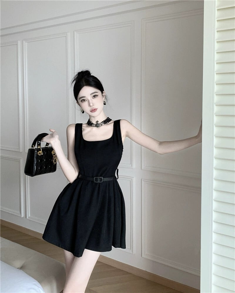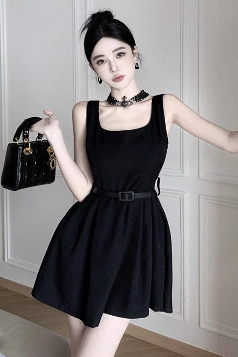 -終了リトルブラックドレス女性フレンチヘップバーンスタイル黒気質セクシーなウエストスリムパフベストドレス yeyij82627948163