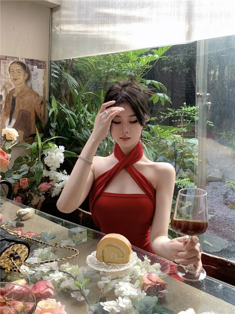 ライブ服女性アンカー pogenic 純粋な欲望スタイルのセクシーなクロス一言ショルダーバッグヒップチューブトップホルターネックドレス ピュア yeyij47485035970