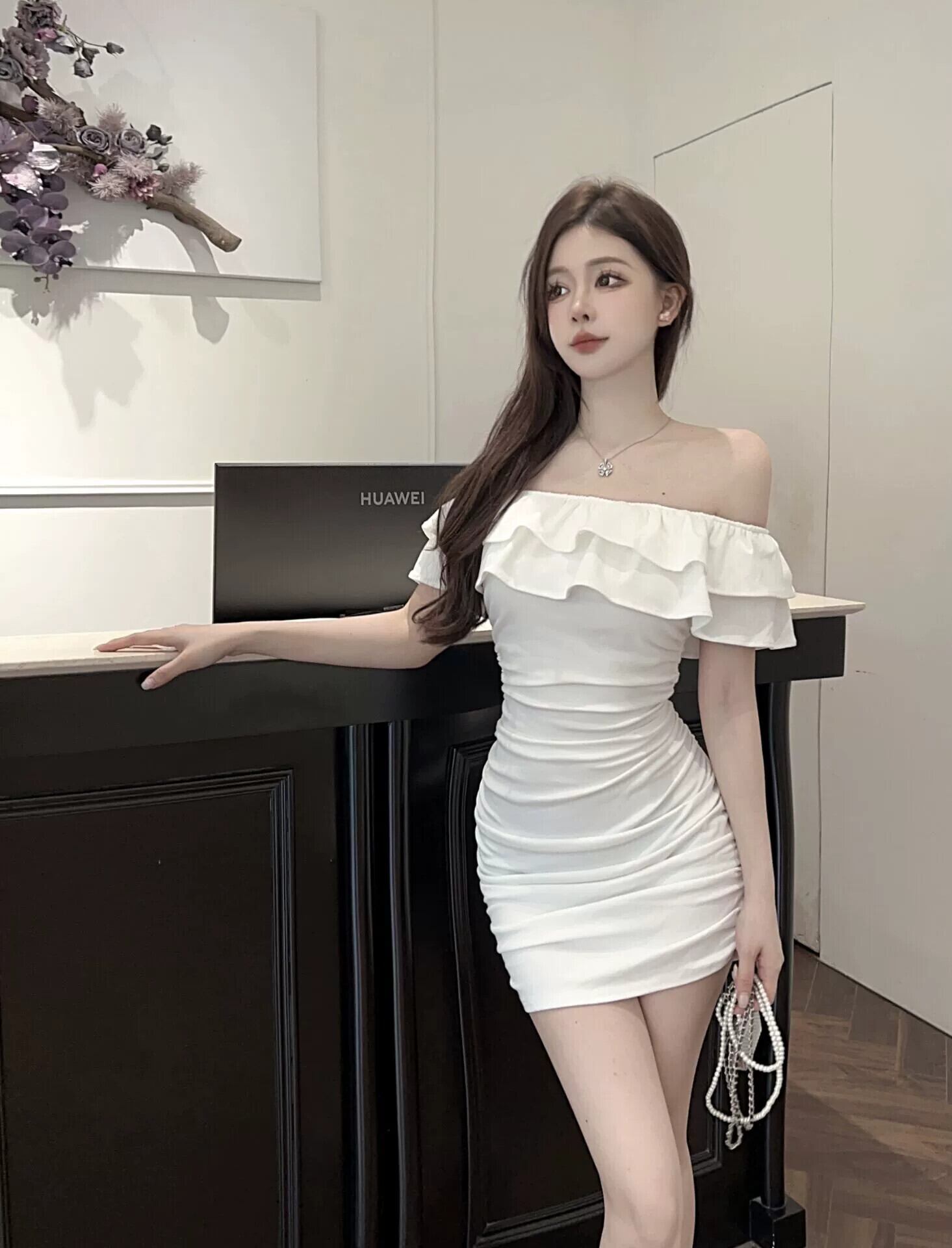 ライブ服女性アンカー pogenic 純粋な欲望スタイルの白いドレスフレンチフリルセクシーなワンショルダードレス ホワイト ピュア yeyij30816584567
