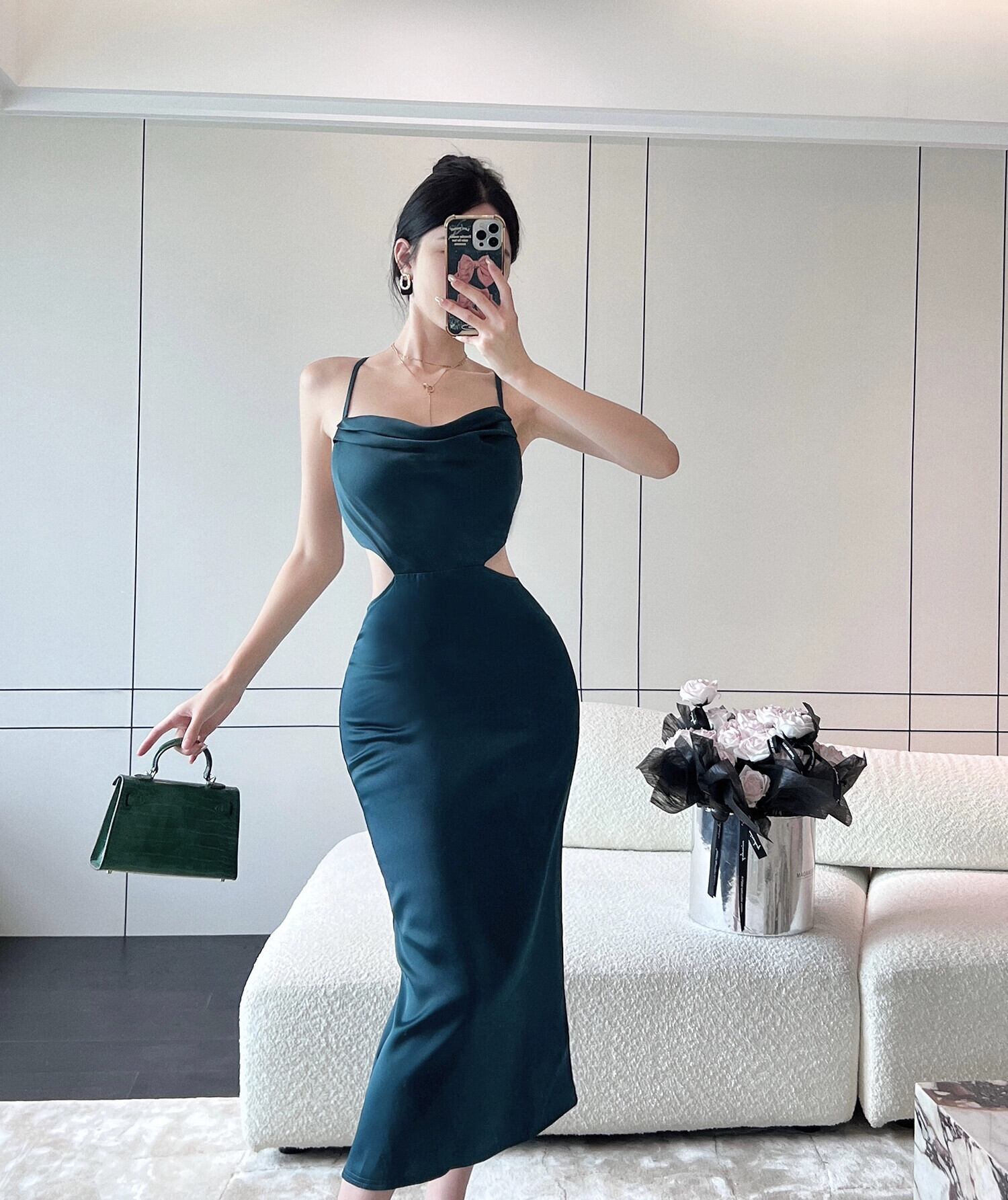 イブニングドレスの女性 2023 新しいハイエンド感覚中空バックレスセレブ気質セクシーなミッドレングスサスペンダードレス yeyij93927197478