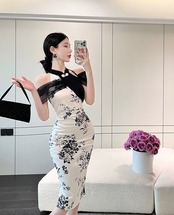 中国風のチャイナイブニングドレス女性 2023 新しいハイエンドロングスカート改良されたセクシーなストラップレスホルターネックドレス yeyij30590711133