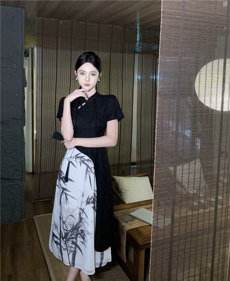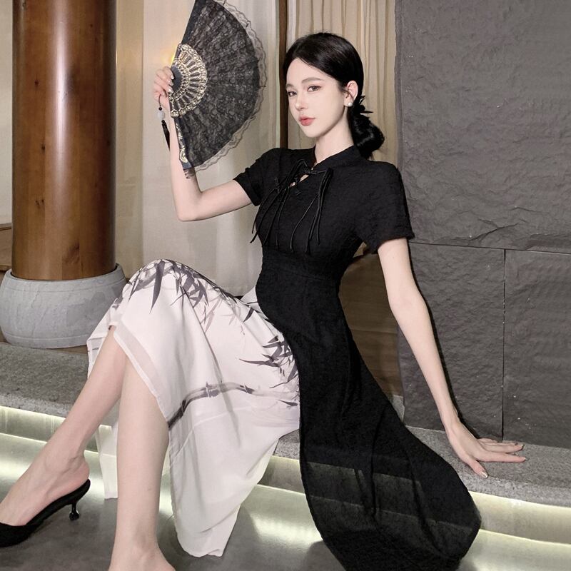 中国風のチャイナドレス新しい2023ハイエンドセンスアンカー生放送pogenic改良されたミッドレングス偽ツーピースドレス yeyij12127777124