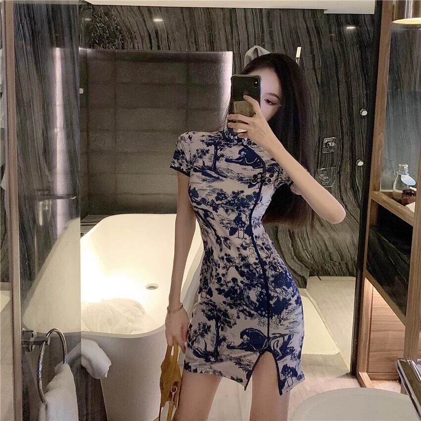 ライブ服アンカー Pogenic 若い女の子レトロプリントセクシーなタイトなお尻のチャイナドレス クーポン付き yeyij20328229180