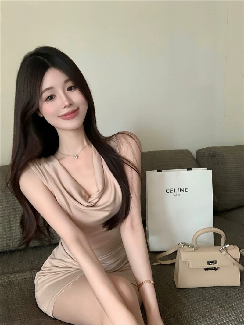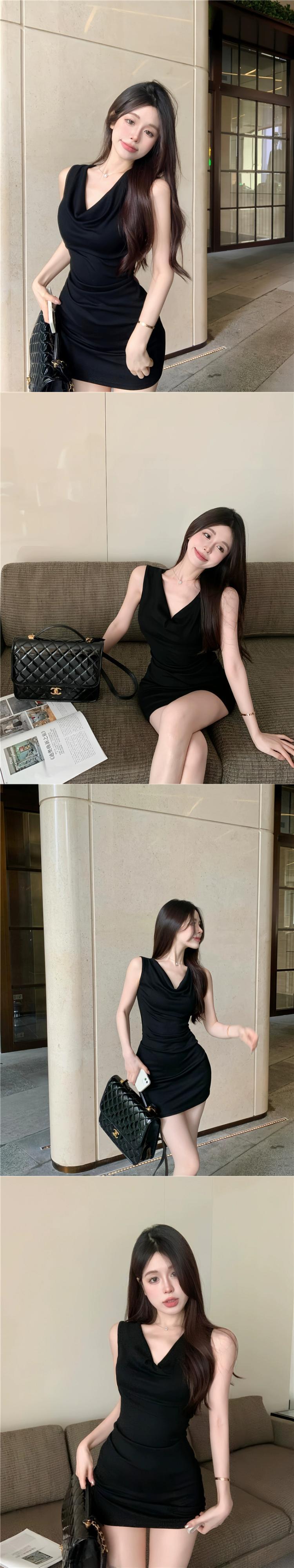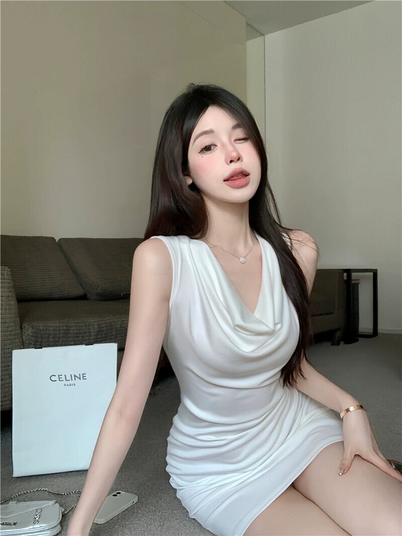 ライブ服アンカー Pogenic エンド純粋な欲望スタイルパイル襟気質サテンセクシーなノースリーブヒップドレス ピュア yeyij32614149100